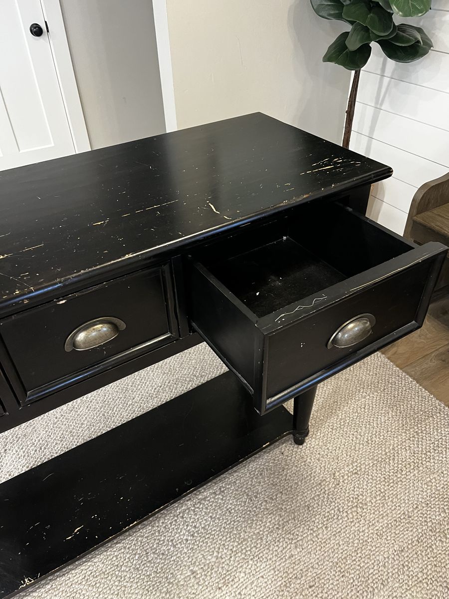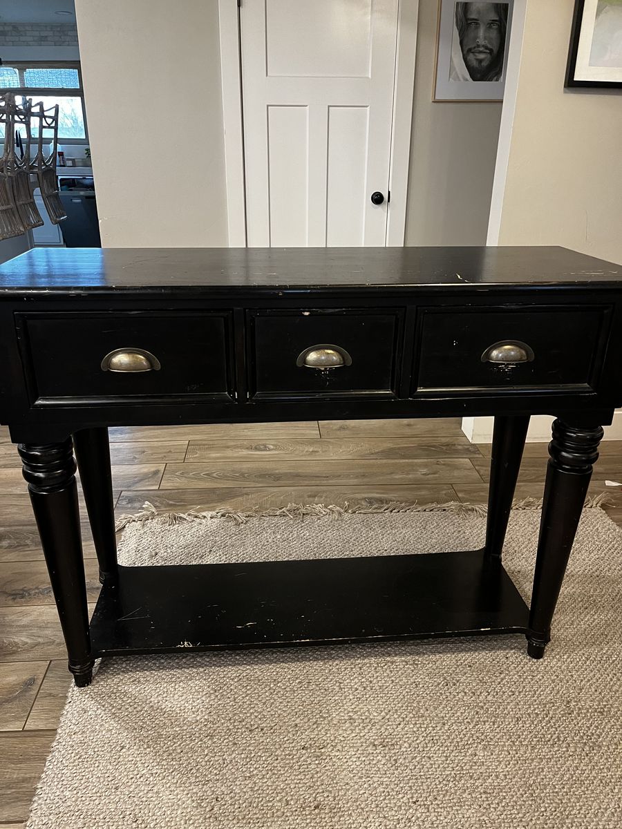 VenmoPottery barn entry table. It’s a really nice, heavy duty piece. Has several blemishes as it’s a little older. $75 OBO. It’s about 17” wide, 48” long and 35.5” tall. Call or text. Thanks!