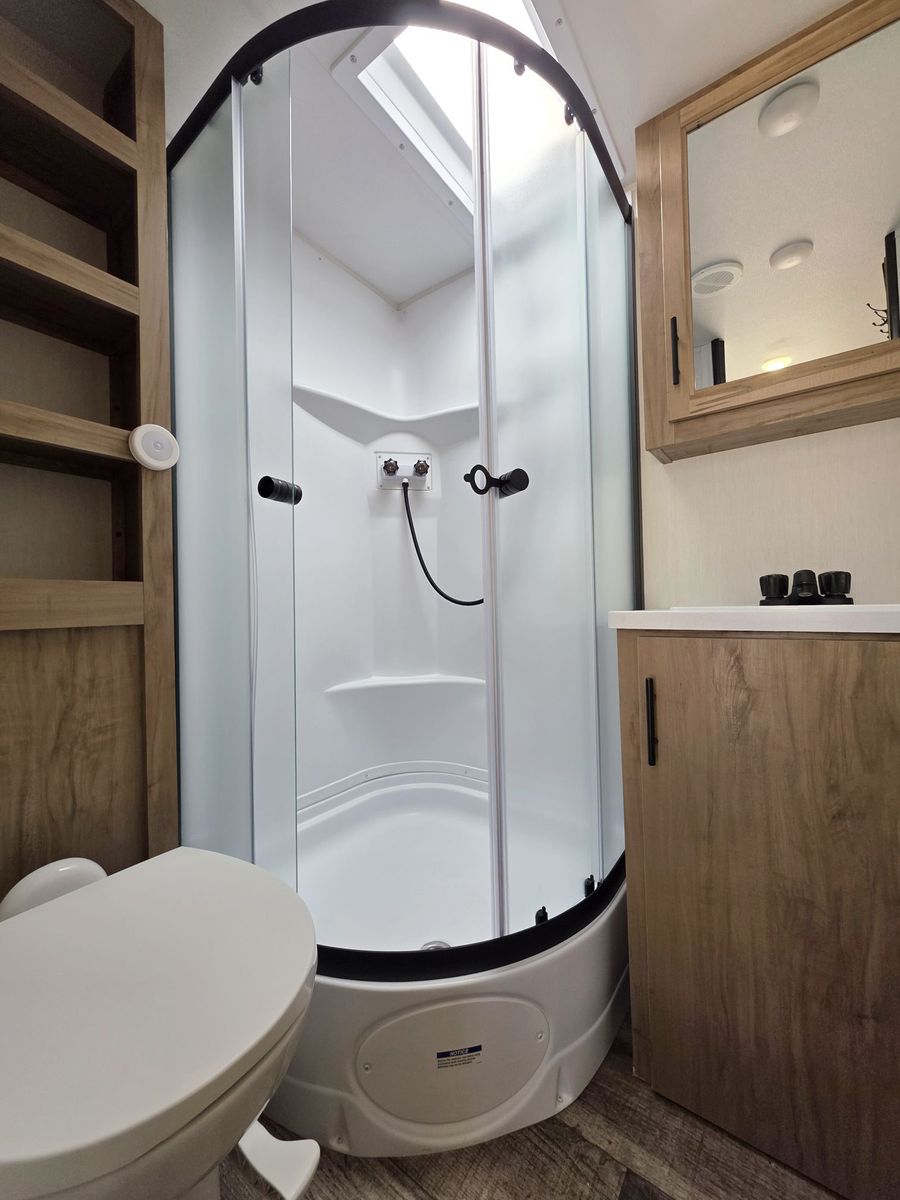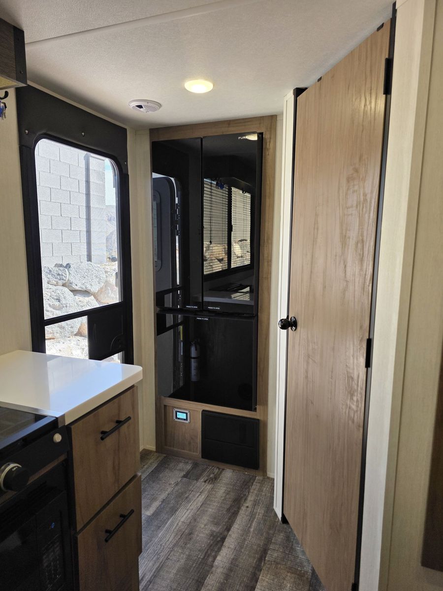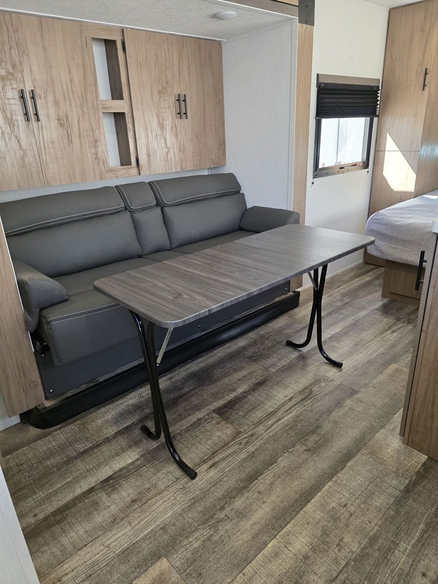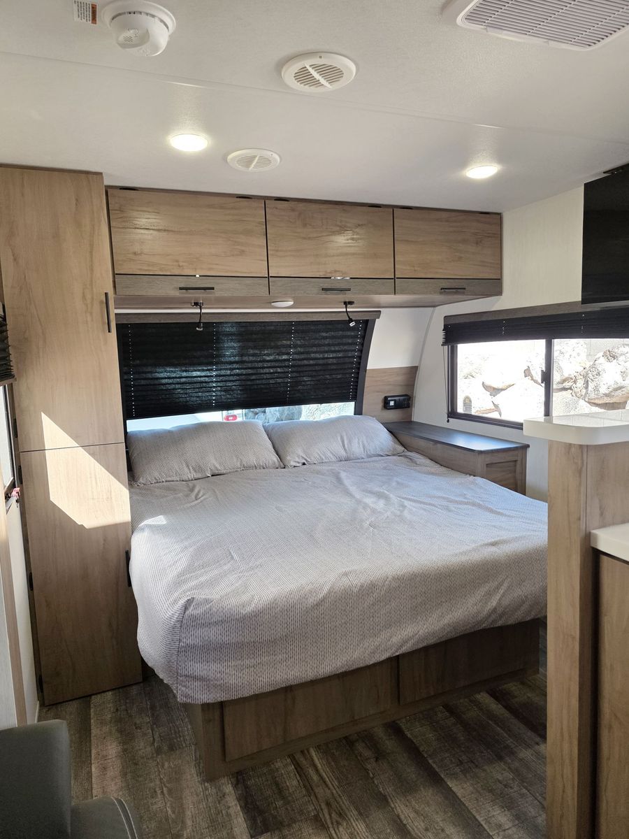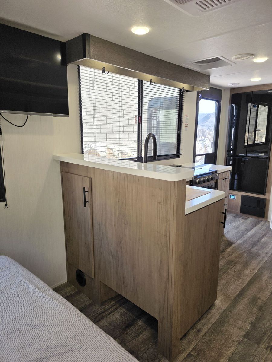 1500AH LITHIUM SYSTEM PRO INSTALLED. Will run everything including AC. Charges via the plug in cord. Boondock for 3-5 days depending on AC use. We have only used it twice. 10 Cubic Ft fridge. Couch turns into bed. 52 gallons fresh water. Instant hot water heater. 42" TV. Shock absorber suspension. Camp King Bed. Our 2025 Forest River Campsite Ultra 19KB is a travel trailer designed for those seeking adventure on the open road. With only 300 miles on the odometer, this like new model is ready to take you to your favorite destinations in style and comfort.