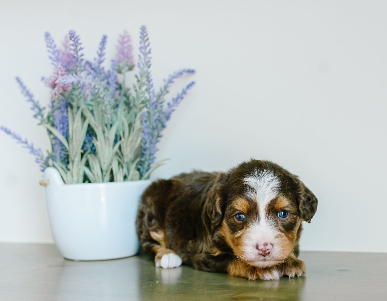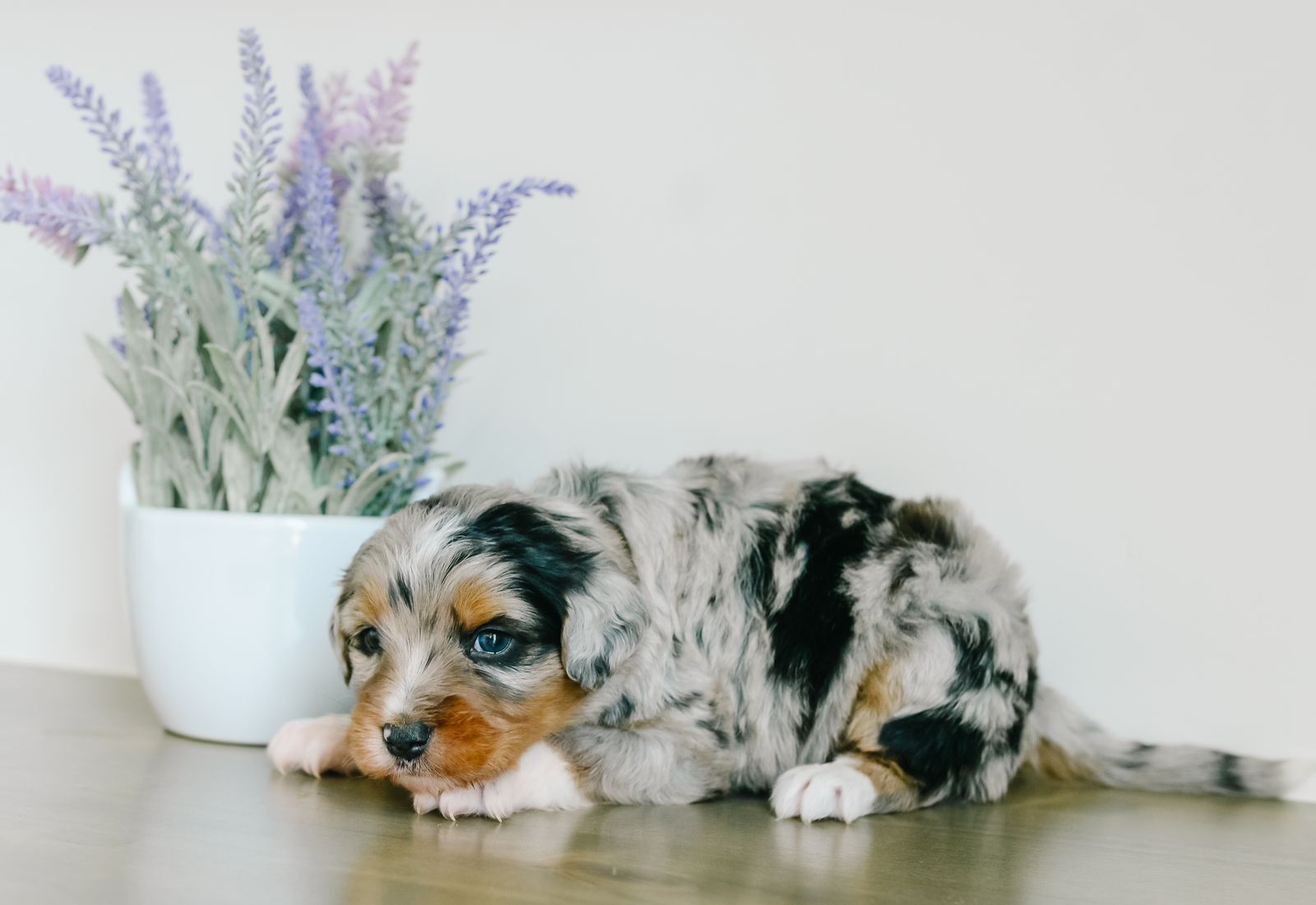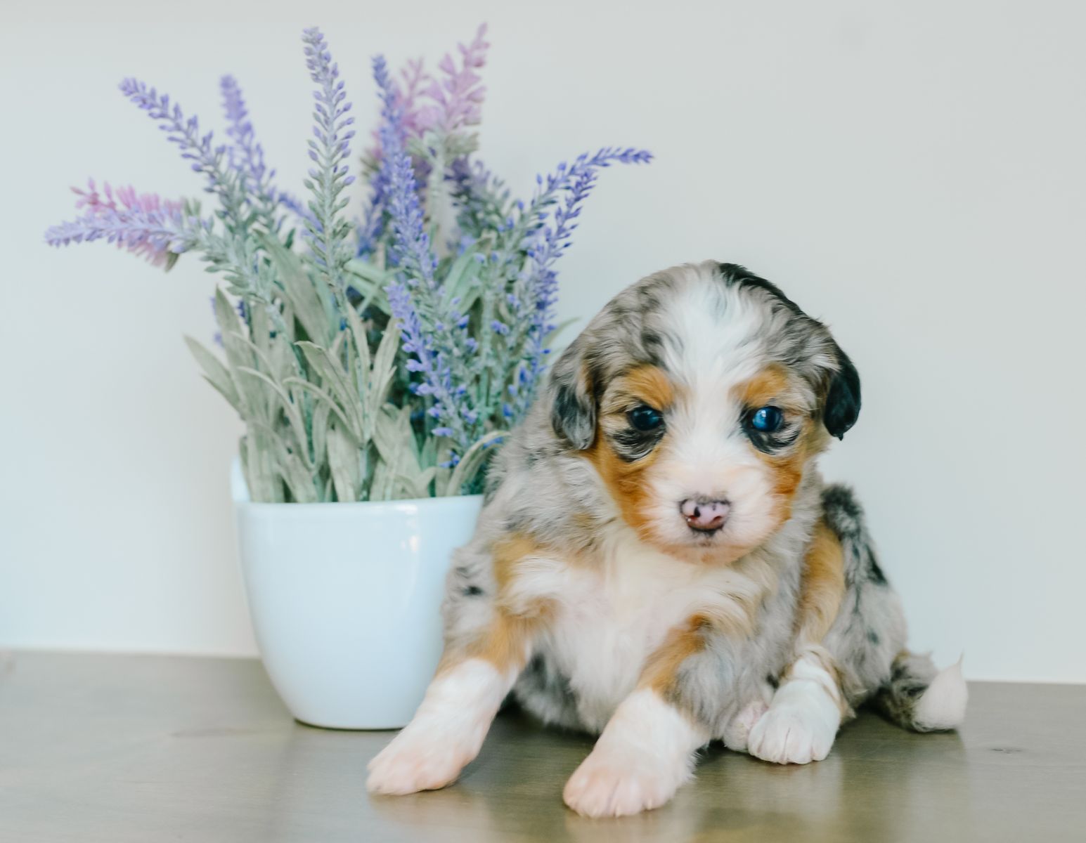 ApplePayMeet our stunning Chloe x Harvey litter of Mini Australian Mountain Doodles. Why choose between a gorgeous puppy and a phenomenal temperament when you can have both?! These puppies will be furnished and hypoallergenic, with soft wavy coats. They are estimated to be 25-35 lb full grown. They will be ready to go home the last week of March. At K Brand Breeding Co., we get our puppies off to the best start possible for a seamless transition to their new home and family. They will have a good start to crate and potty training, first round of shots, dewormed every two weeks and vet checked before they go home with you. They have all kinds of attention and socialization including early neurological stimulation from day 3-14. They go home with a fun little swag bag that includes a mamas scent blanket, toy, ball, bandana, training treats, small bag of food, plus vet paperwork and a year health guarantee. Call or text any time for more information! You can also check out our website at kbrandbreedingco.com