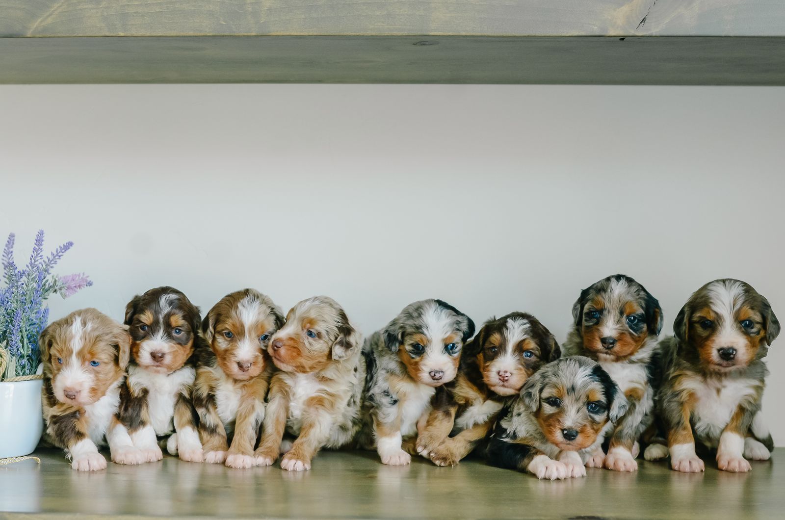 TAZ- male chocolate Merle JOEY- male chocolate Tri HOBART- male blue Merle ADELAIDE- female chocolate Tri DARWIN- male blue Merle REEF- male blue Merle DINGO- male chocolate Merle SYDNEY- female blue Merle KOOK- male chocolate Merle