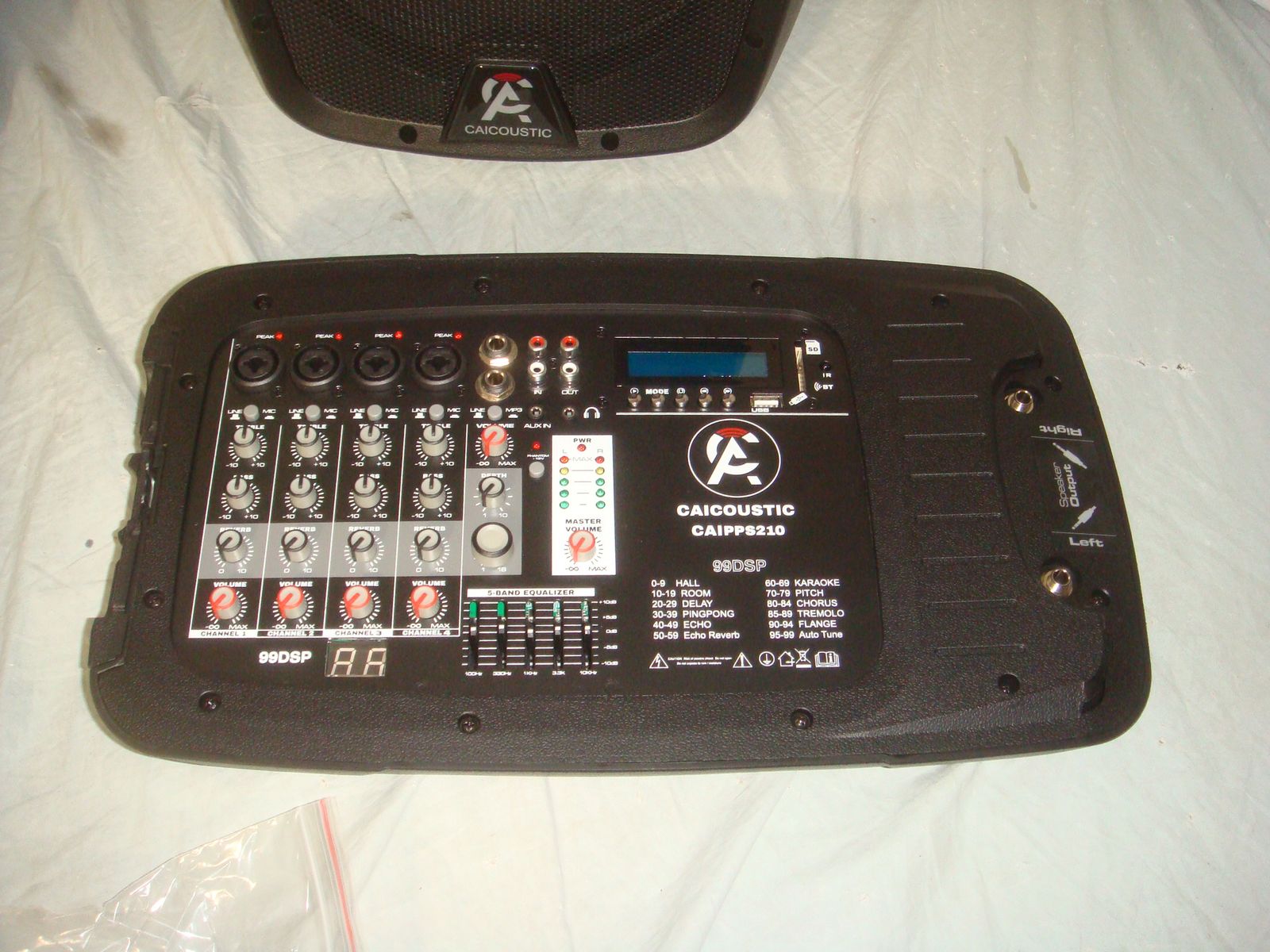 BRAND NEW, OPEN BOX CAICOUSTIC CAIPPS210 8 CHANNEL 2X10" PORTABLE PA SYSTEM WITH BLUETOOTH & EFFECTS. This is brand new, never used. The original box was slightly distressed in original transit, but the PA system and all contents were unharmed and are in new, perfect condition. It works great and comes with everything shown. These are normally $448.99. This is your chance to save big-time so don't miss out!!