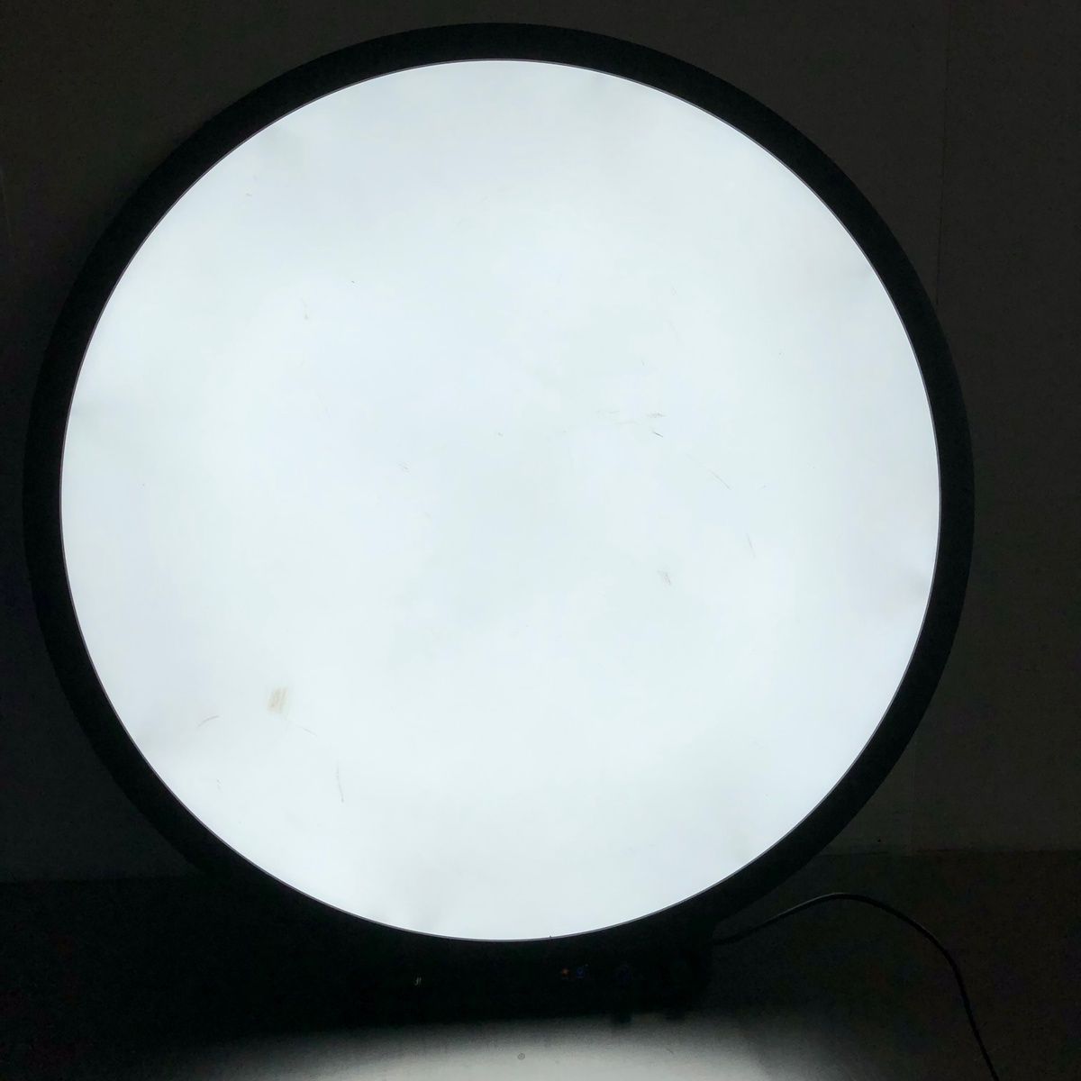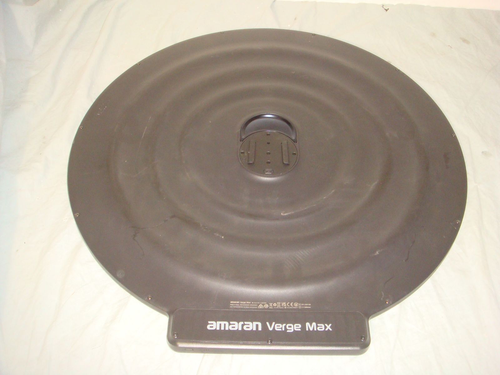 AMARAN VERGE MAX BI-COLOR ROUND FLICKER FREE LED LIGHT PANEL. This is a used item that has some surface marks and signs of use, but that's in overall good condidion. It is the LED panel only with no mount or power adapter. It uses a simple USB-C power adapter, but we did notice that you need a higher power one for it to power it up. It didn't work with a 35W usbc adapter, but did with a 100 watt one (we didn't have anything in between to test it further). It works great and gets super bright. It's fully adjustable with the brightness and color temperature. It comes with everything shown. These are normally $260. This is your chance to save big-time so don't miss out!!