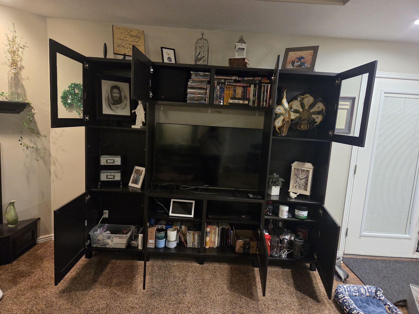 VenmoBlack Entertainment center with cabinets great shape. 125 obo