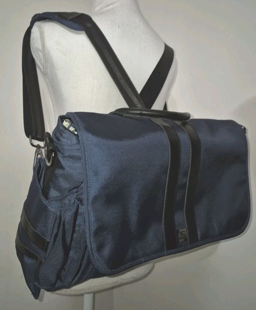 The E.C. Knox's navy ballistic nylon Classic diaper bag crafted of premium materials and heavy-duty construction and stitching. The perfect men's convertible diaper bag!