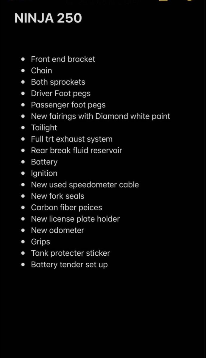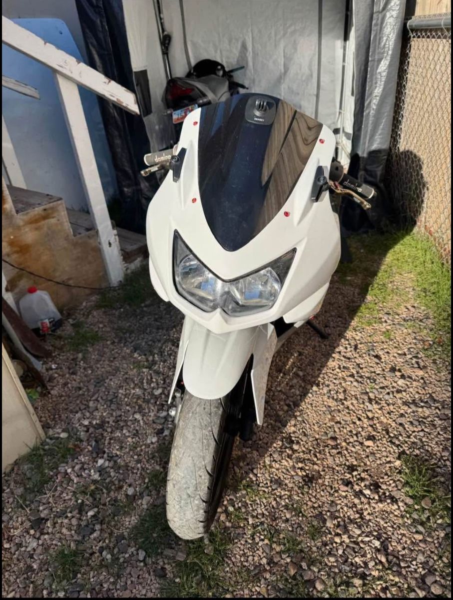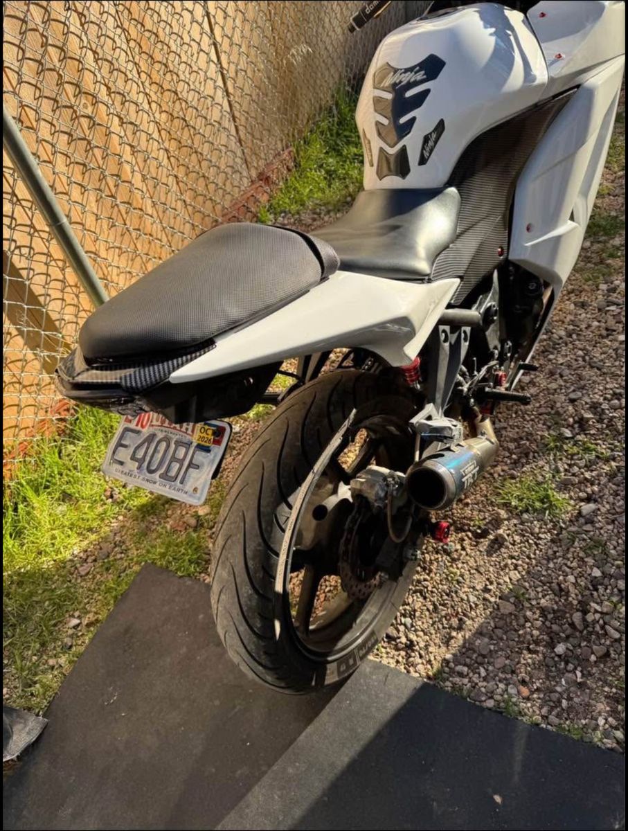 Selling my 2009 ninja 250r, starts no problem and rides amazing, great beginner bike, the bike has a clean title. It has stage 3 air system mod, it is carbureted, does have a crack on right side plastic from unknown will see in pictures, Mileage is around 40k I’ll have to add up the old Speedo to get exact. Bike has full red bolt kit. Have been on bikes maintenance, have done oil changes every 1k miles, and oil filter every other change, last oil and oil filter change was 245 miles ago, has new chain, may need tires soon. Full parts list in pictures. Comes with bike cover. let me know if you are interested/questions Bike is beginner ready!!!! $2,700 bottom dollar!! No negotiation