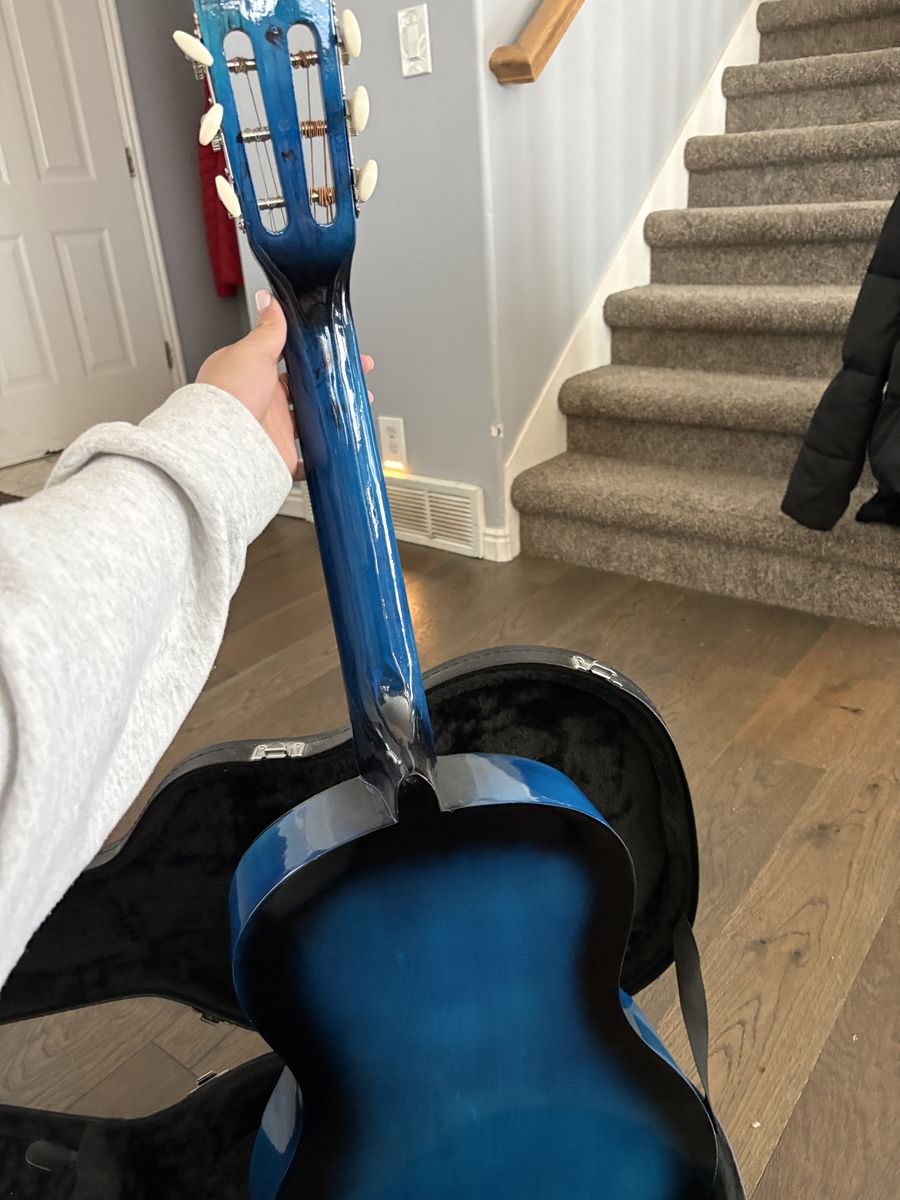 This is a good guitar for beginners. My daughter used it when she was starting out and has since moved on to other guitars. I’m not too familiar with guitars but I think this one is a 3/4 size guitar.