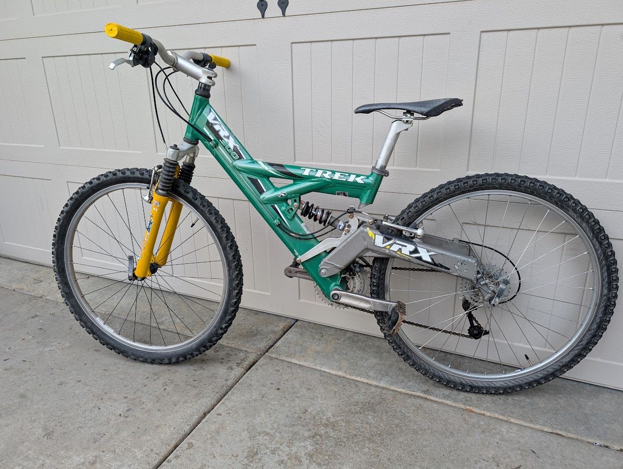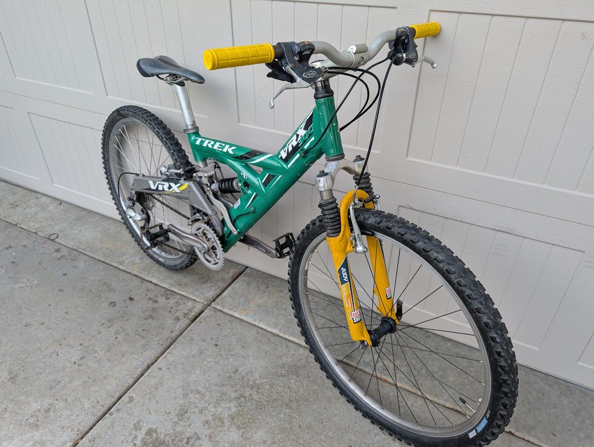 VenmoHere is a Trek VRX 300 full sus bike. Rock shox fork, Fox rear shock, Shimano XT 27 spd shifting, adjustable rear travel. Recent tune up, all new cables, brake shoes and grips. Everything works great. 26" wheels, frame is a size S (16"), fits people 5'2" to 5'6".