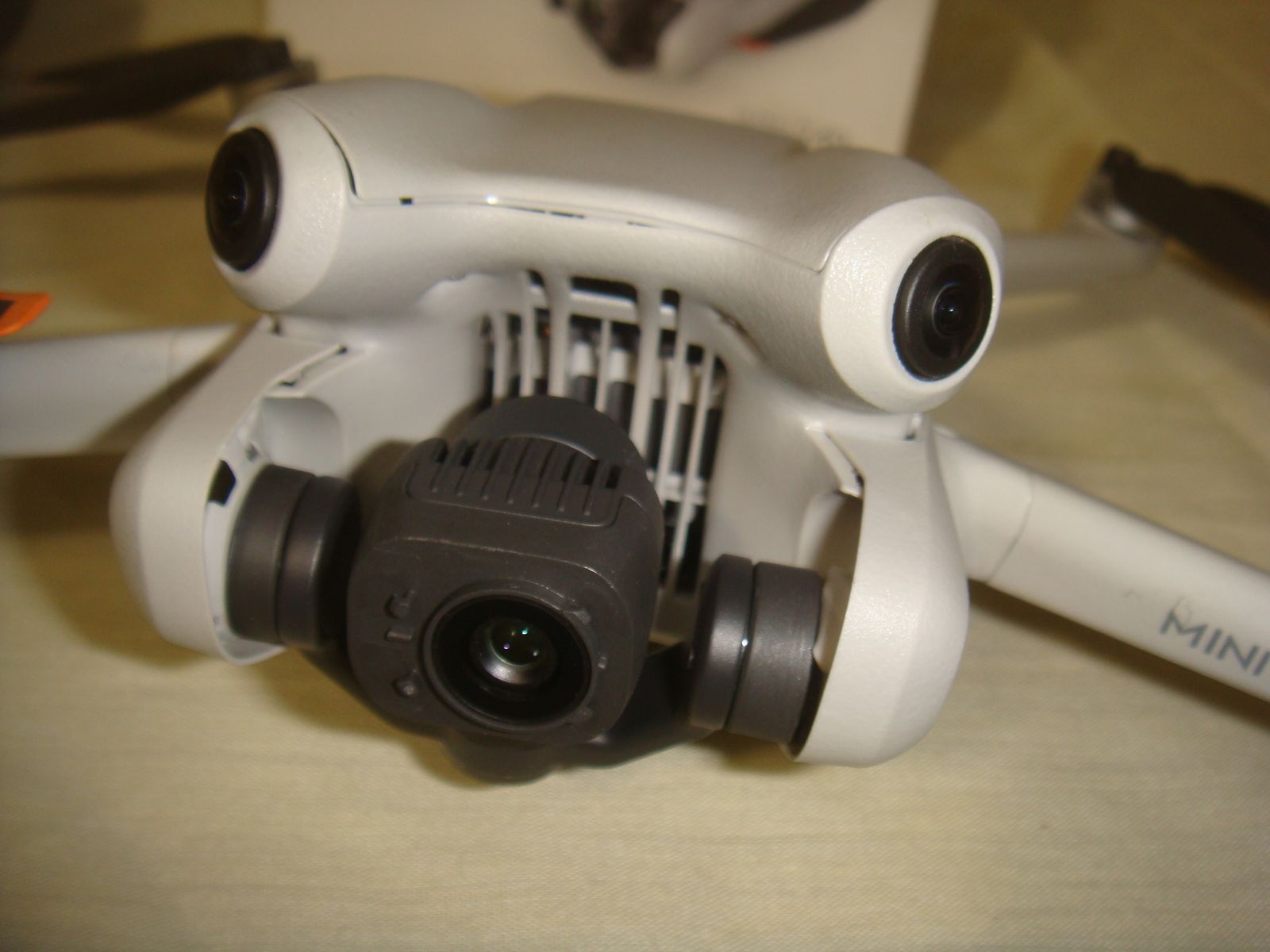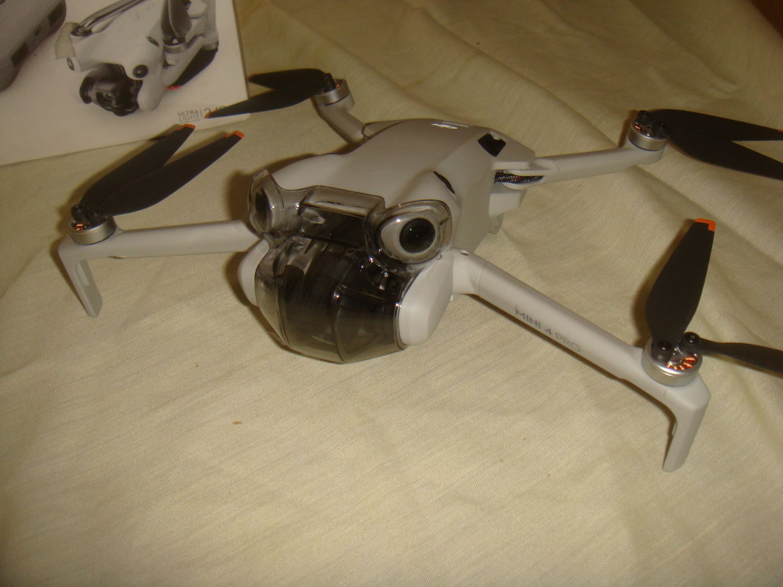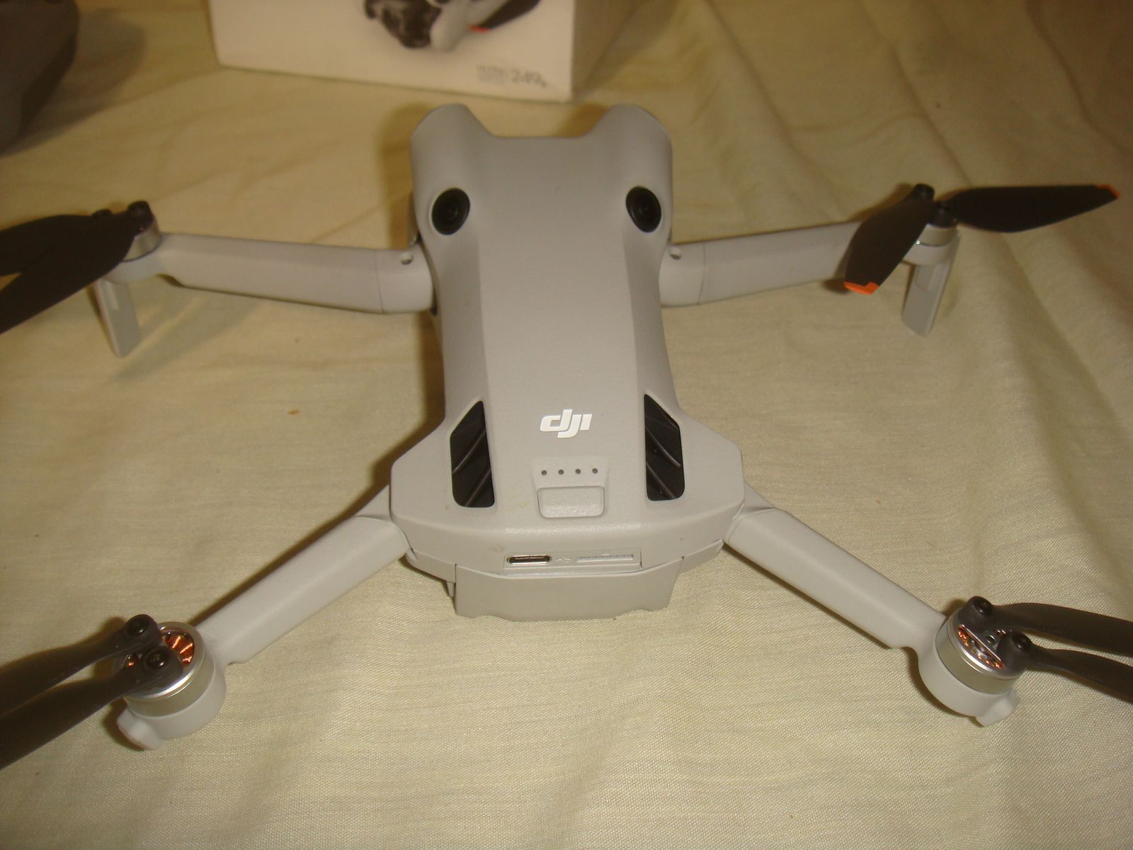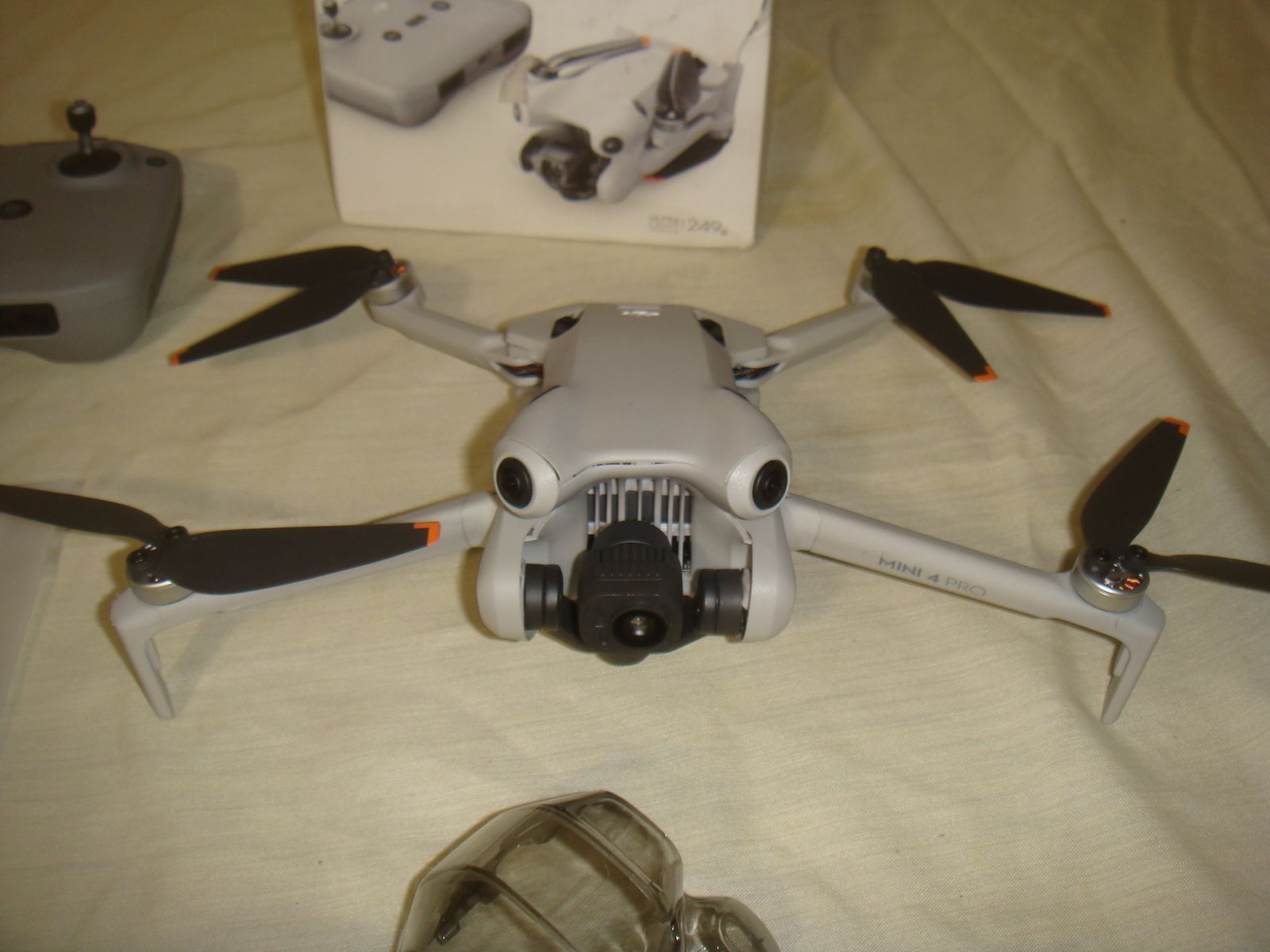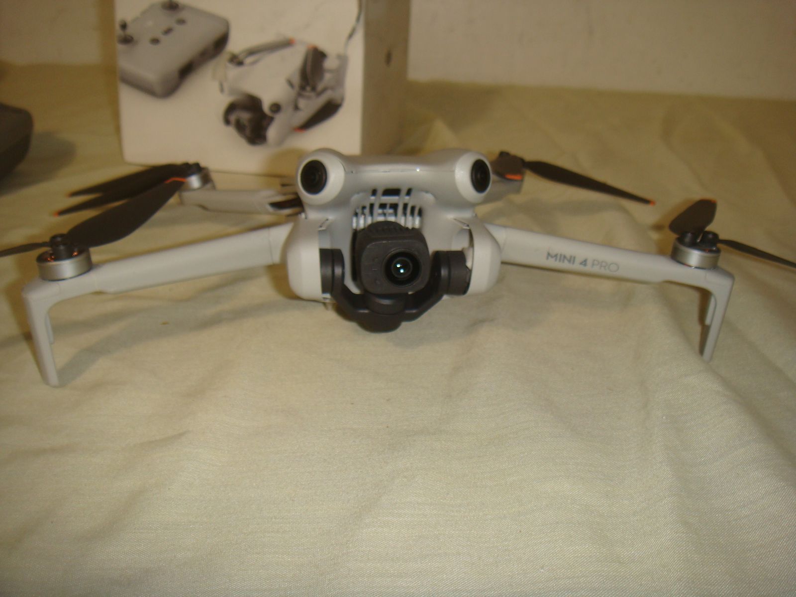 DJI MINI 4 PRO CAMERA DRONE WITH REMOTE & BATTERY. This is a lost freight item that we aquired as you see it in the photos. It is a used and has some very minor separation in the enclosure in the front as well as rear left with a couple of tabs out on the two sides in front of the front arms. The camera is missing the little plastic cover that goes around the lens. It powers up and connects to the controller, takes off, and flies great. The camera works and it moves via remote, but the right side inner pastic attachment point for the gimble looks to be broken and it makes wierd whining noise, we assume, because of the little broken piece there. It still works and staiys fairly stable when in flight, but would problaby need to be repaired at some point. I was able to log onto my account with my phone connected to the remote, but when I pulled up the device management tab and selected this drone, it showed as bound to another account. I don't quite understand why, if it was bound to another account, it would let me log onto my account and fly it, but I never got a message stating that it was bound to another account and that I only had XX number of flights left like they'll usually do when they're bound. Aside from what's mentioned, this drone is in what appears to be practically new condition. It showed only 3 flights on it and I only flew it for a few minutes. Because of the nature, we're selling it as-is for parts. It comes with everything shown. This is your chance to save big-time so don't miss out!!