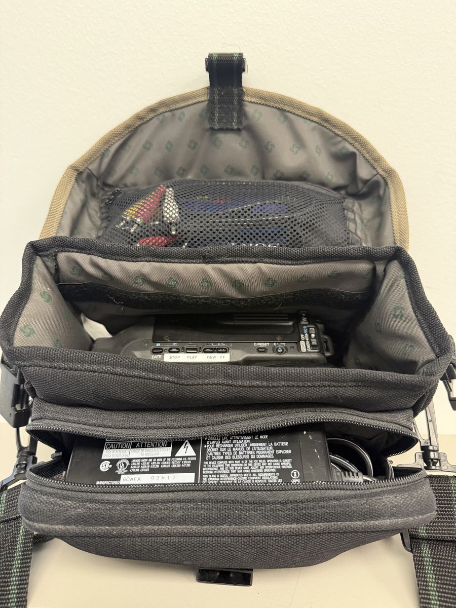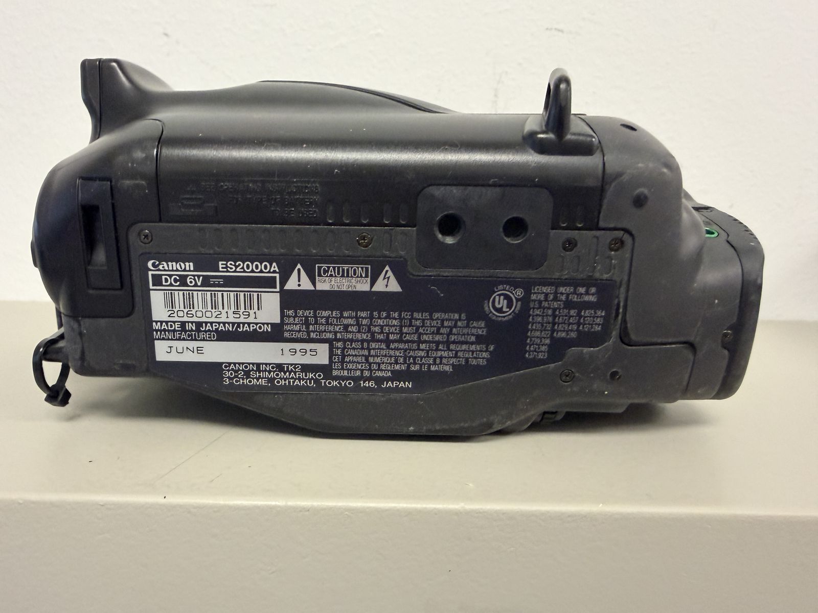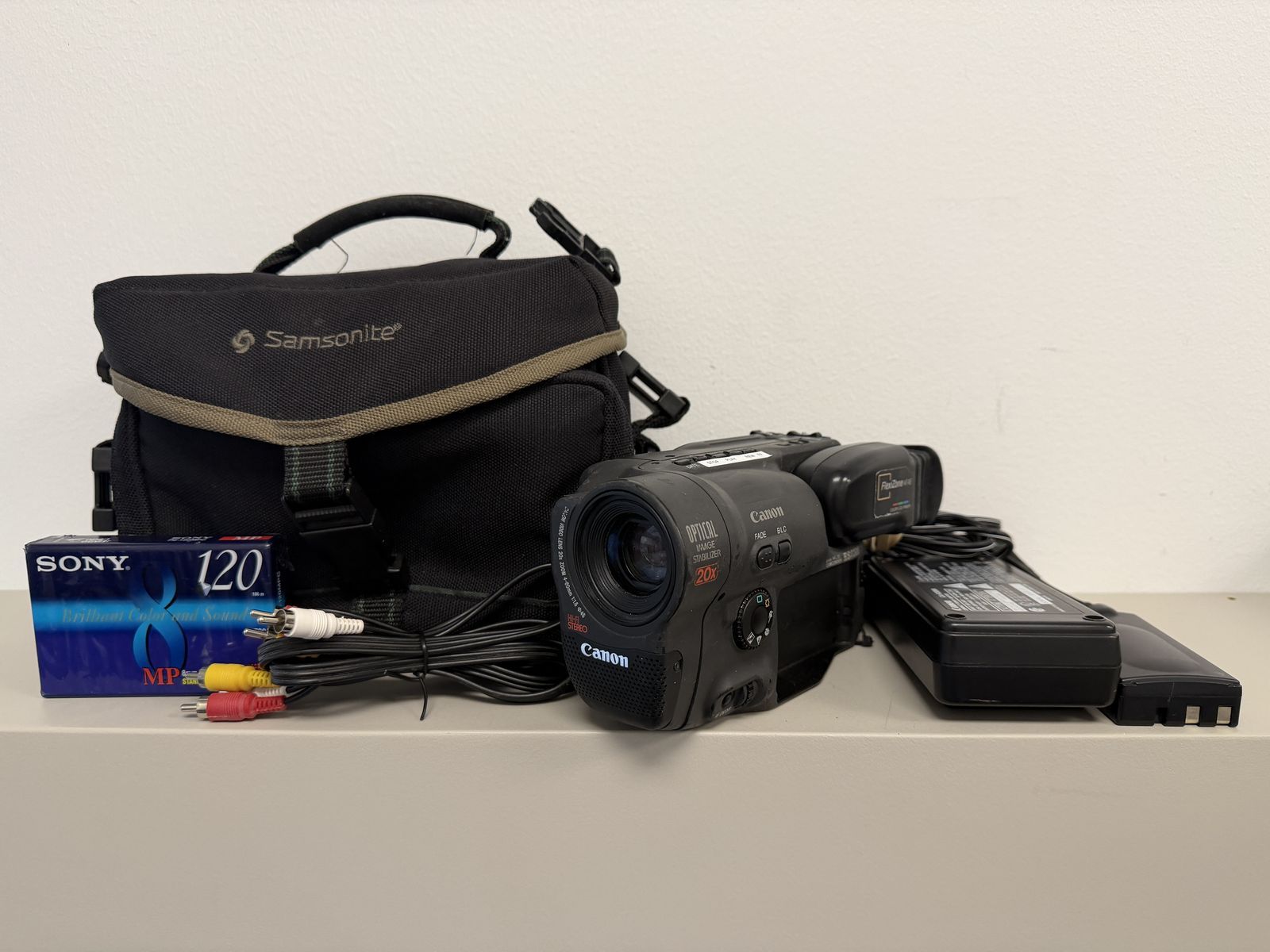 • Canon ES2000A camcorder • Canon AC power adapter • RCA AV output cable • Carrying bag • NEW / unopened Sony 8mm tape