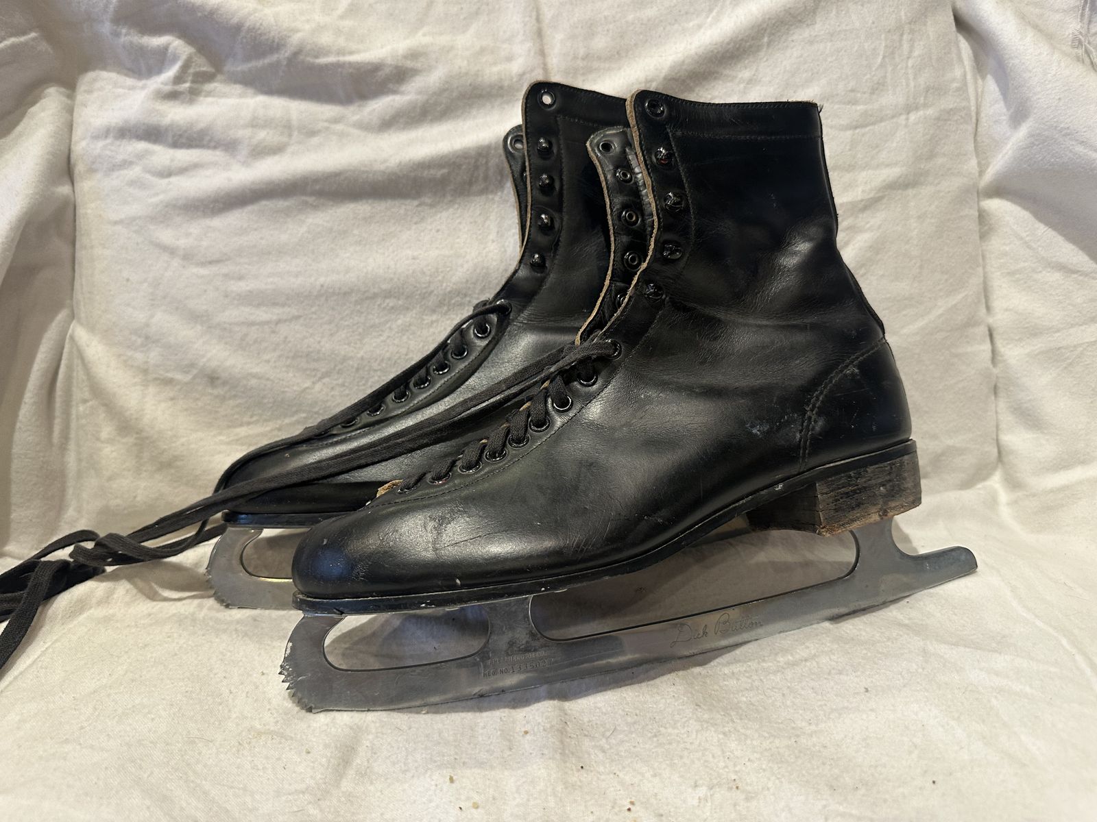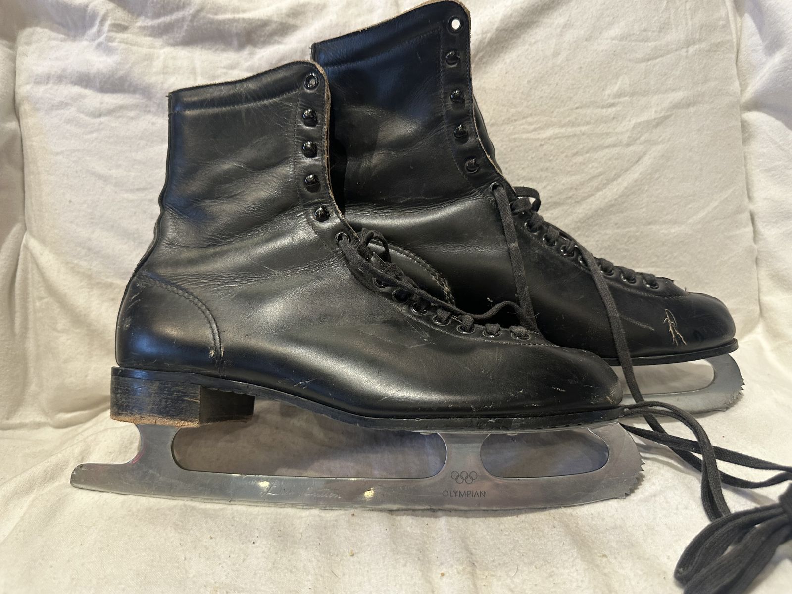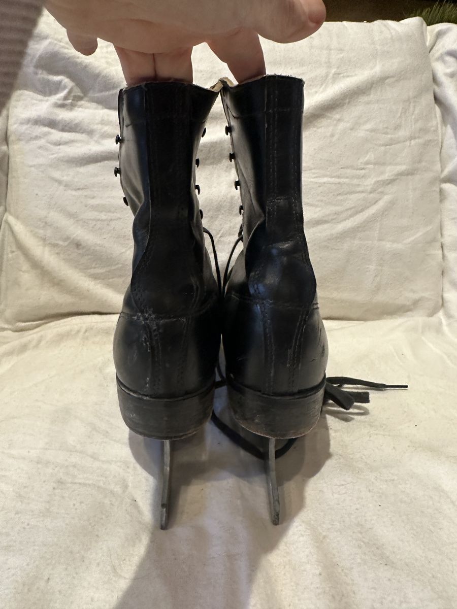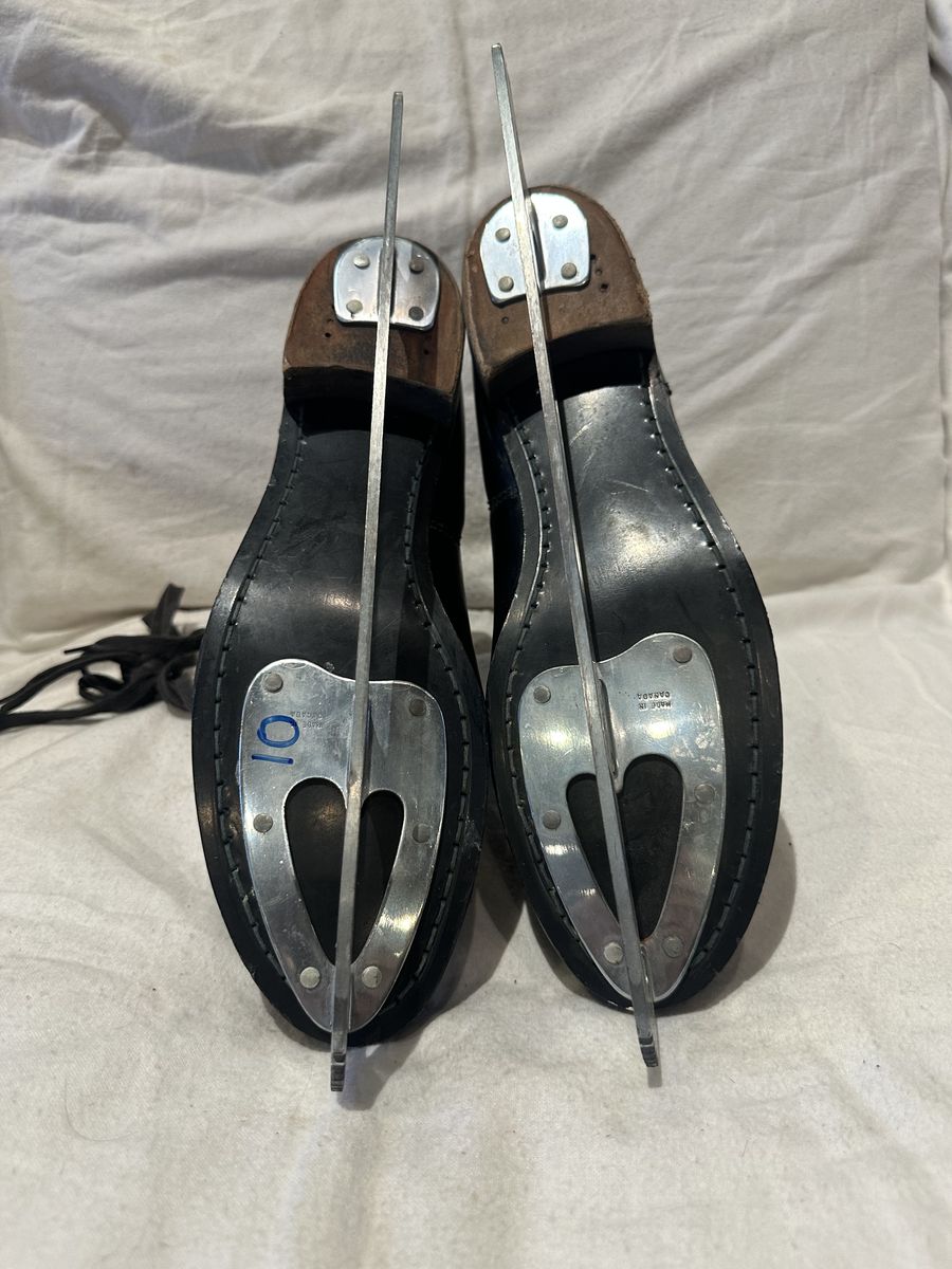 Dick button men’s size 10, black leather figure skates with Sheffield, steel blades and red and black fleece lining. These are in good condition, see photos for details. I take cash or Venmo, but cash is preferred. Text is best. 801-201-4446. Check out my other ads for additional sizes and styles.