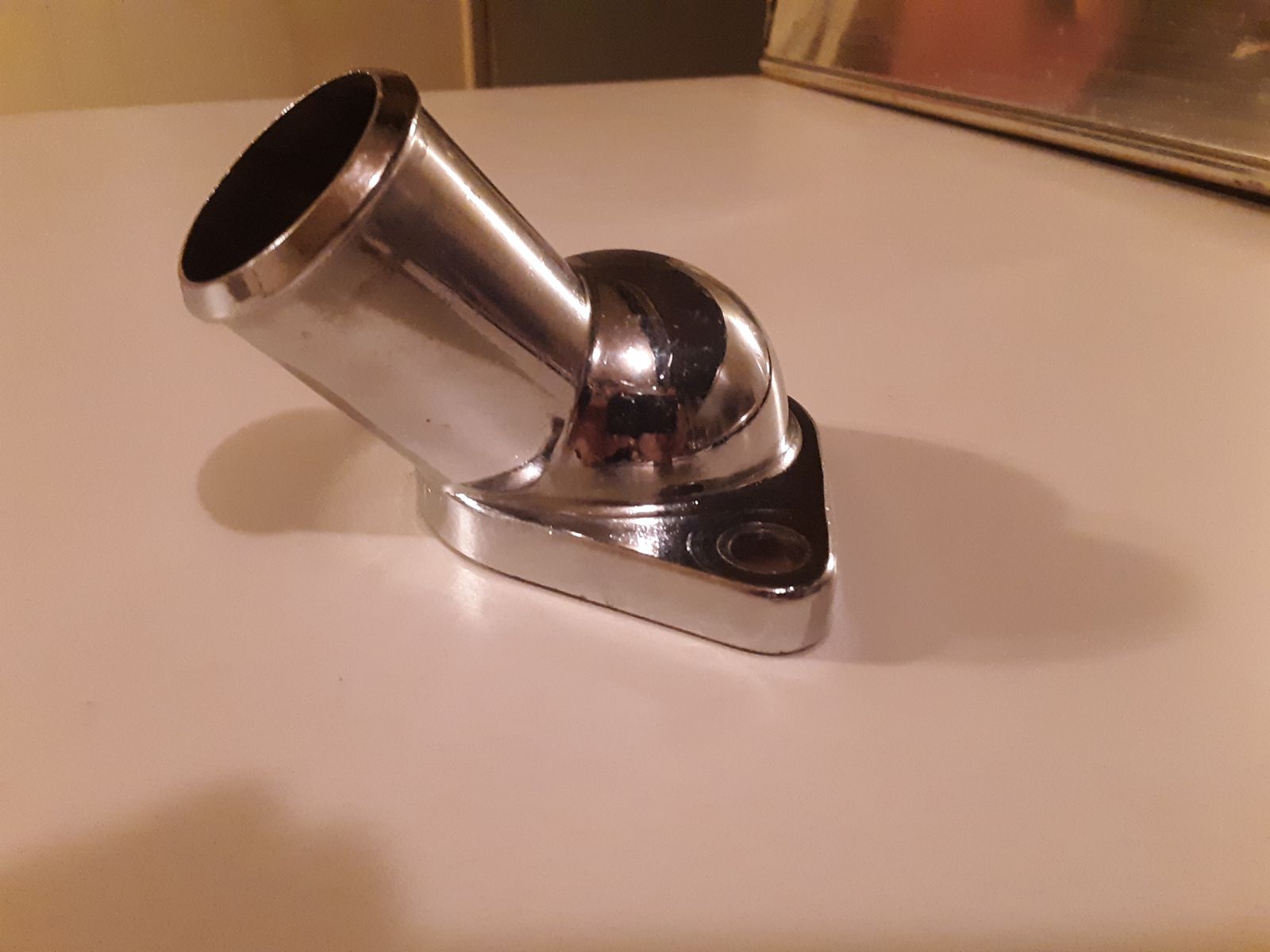 ZelleChevy Small Big Block chrome water neck thermostat housing 45 degree. It's in good shape, i am just downsizing. I take Venmo, paypal, and zelle. I am in Murray once a week could arrange pickup there. I could also mail it if you pay post. Hit more by seller lot's of car parts listed.