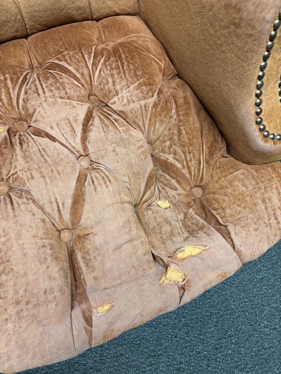 Free chair if you know how to reupholster or fix there is a part of it that needs some love.