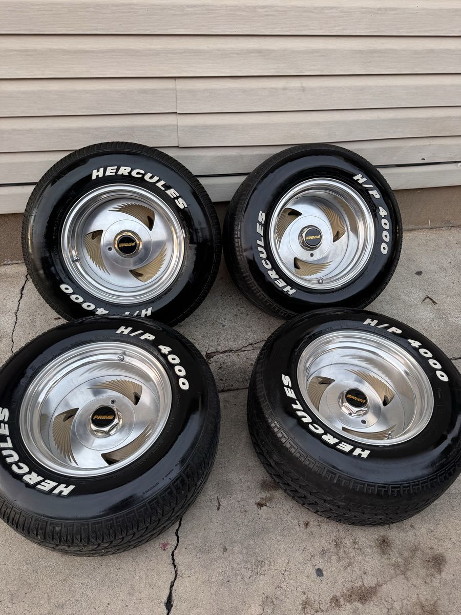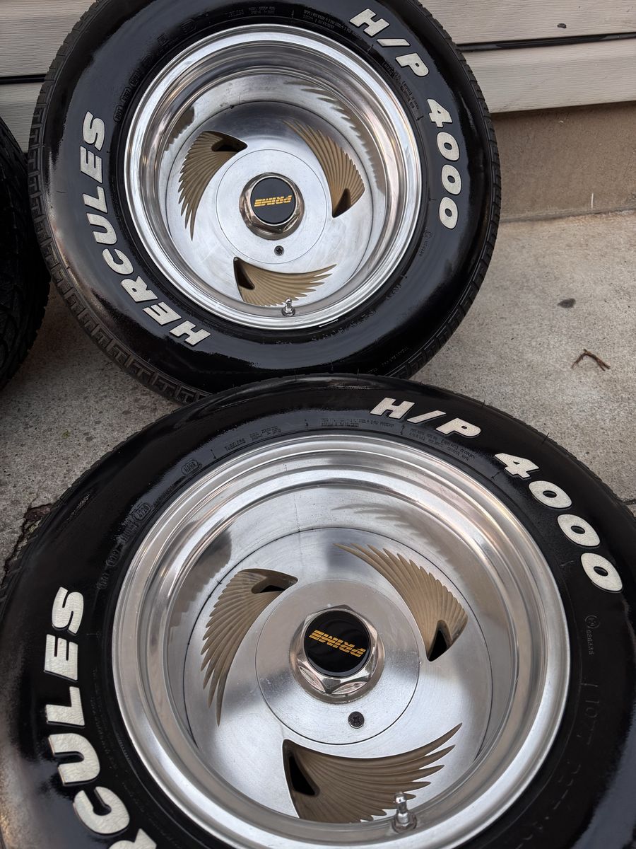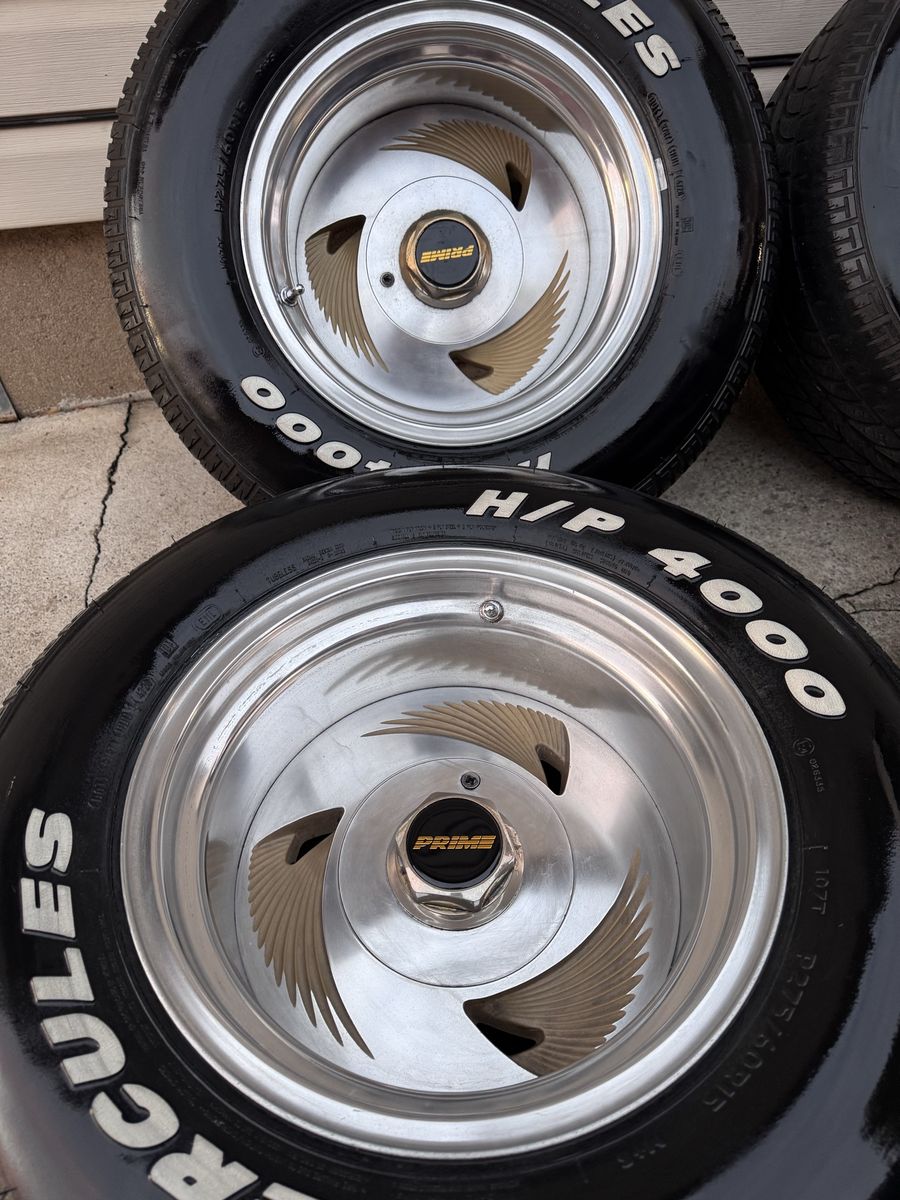 Super Rare 15x10 Prime Wheels 3 Alitas. 5x5 Chevy and 5x5.5 Ford, Tires are in pretty decent shape, wheels are in pretty good shape as well. $2400. NO Trades