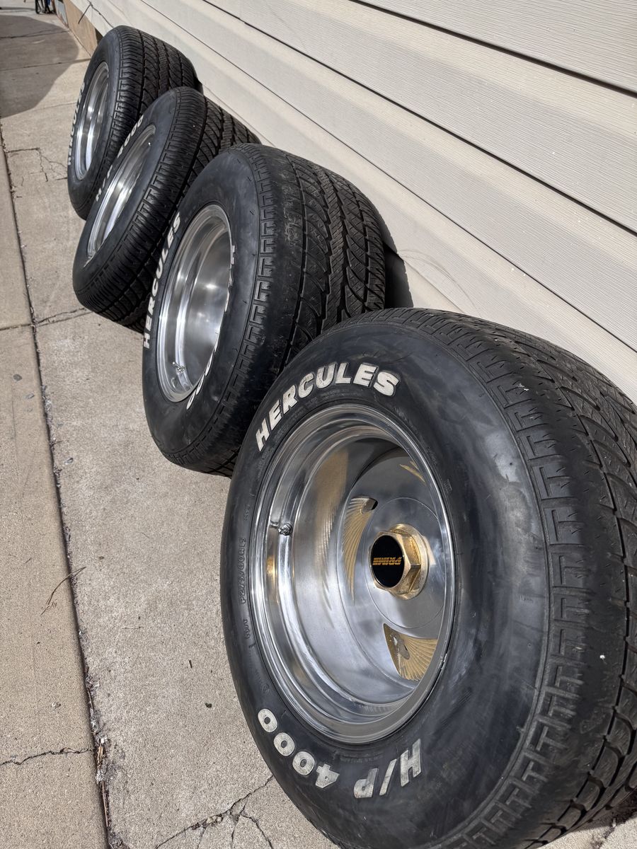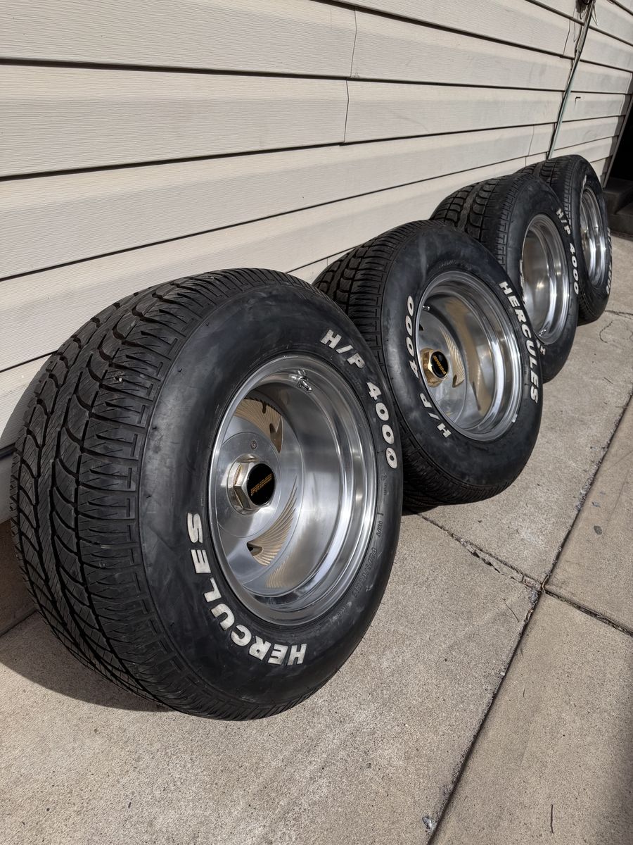 Selling My 15x10 3 wing prime wheels, 5x5.5 and 5x5 wheel lug pattern. Tires are in pretty good shape. 2 tires do have minor outer wear (check pics. Asking $2500 NO TRADES