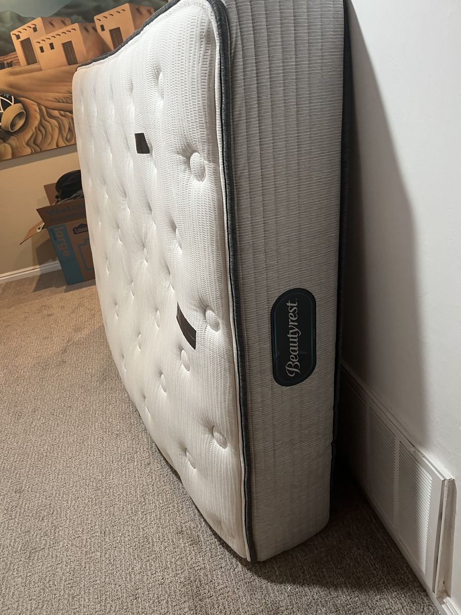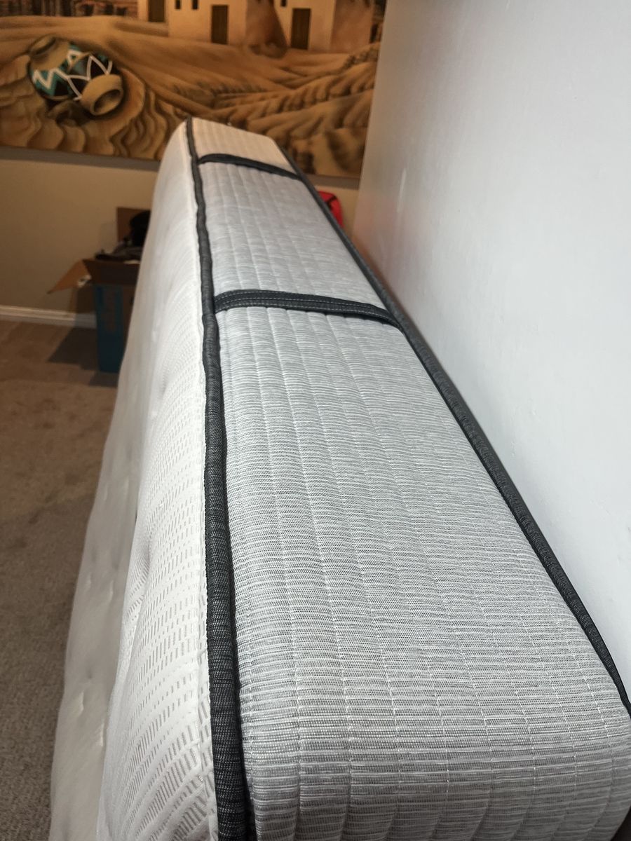 Don’t have a need for this mattress anymore after we moved. It’s in great condition. We did pull some loose thread when we vacuumed it, so that is why there is black tape. The black tape is to ensure the thread doesn’t unravel.