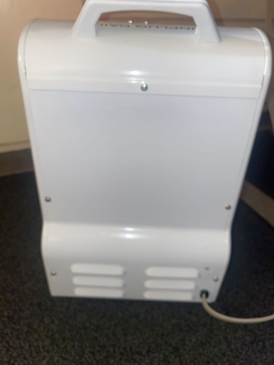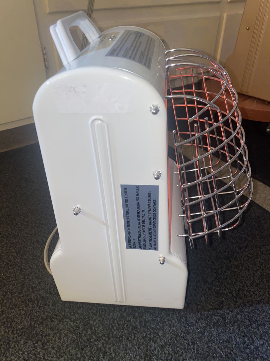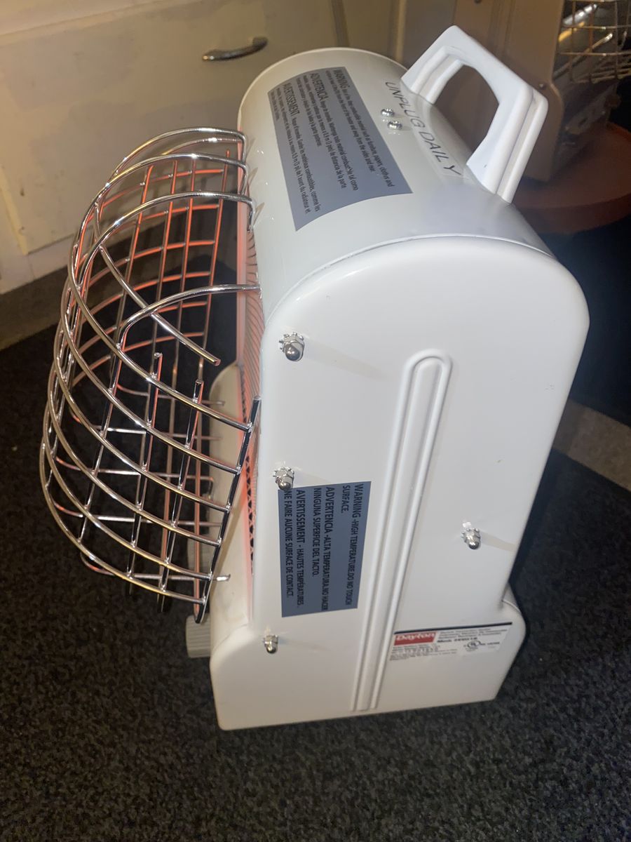 Works great and heats up a room in no time. Three temperature settings with the thermostat as well. It is like new in perfect condition. You will be surprised at how nice this works : ). These sell for $150 New and this one is the same as new for sure!!