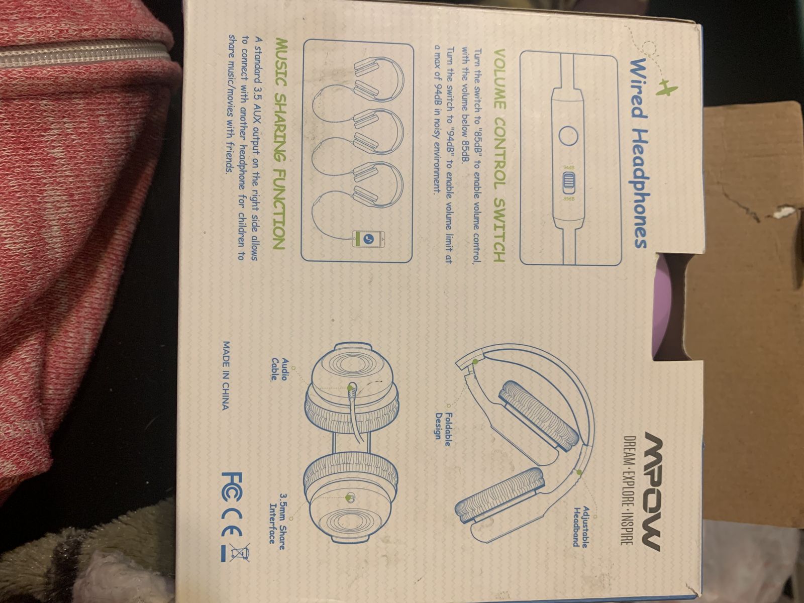 Foldable adjustable wired headphones, purple, new