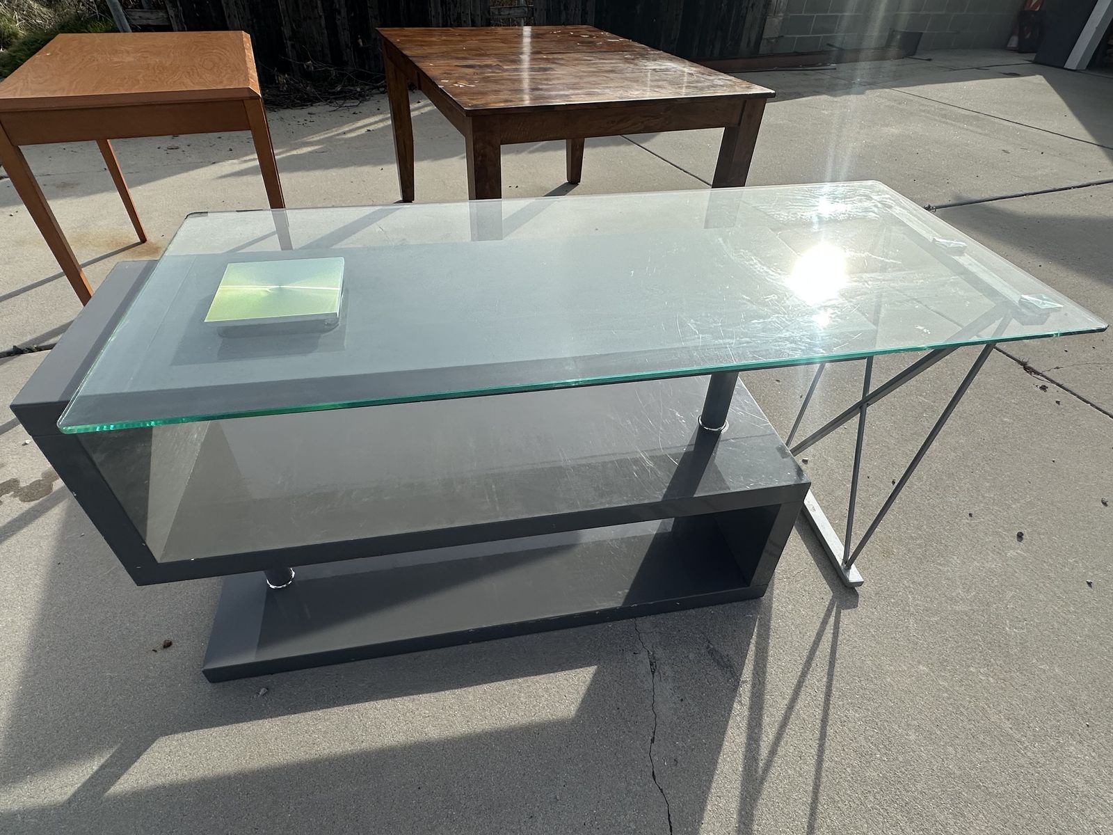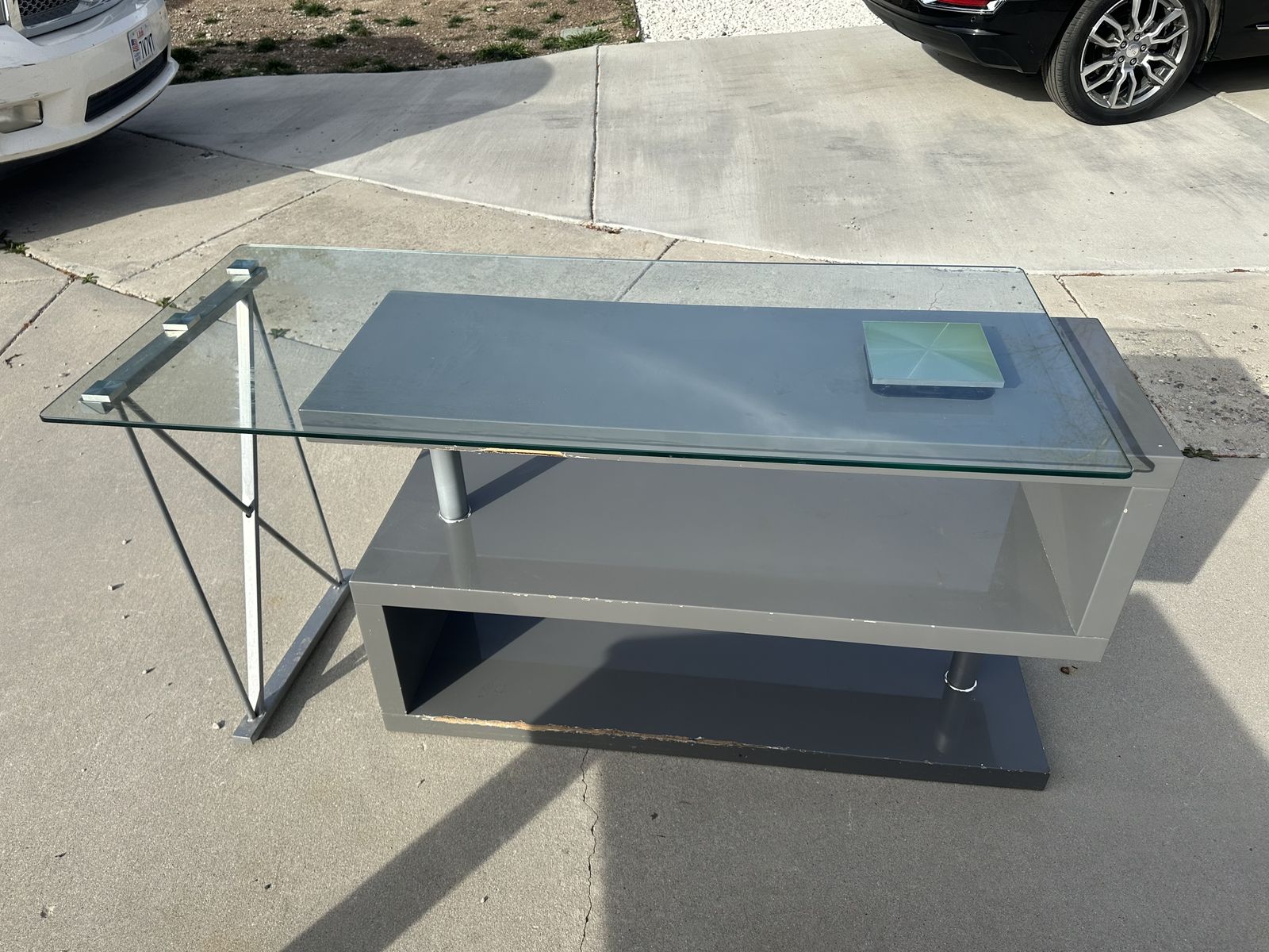 glass table, has a partially broken side. 50$