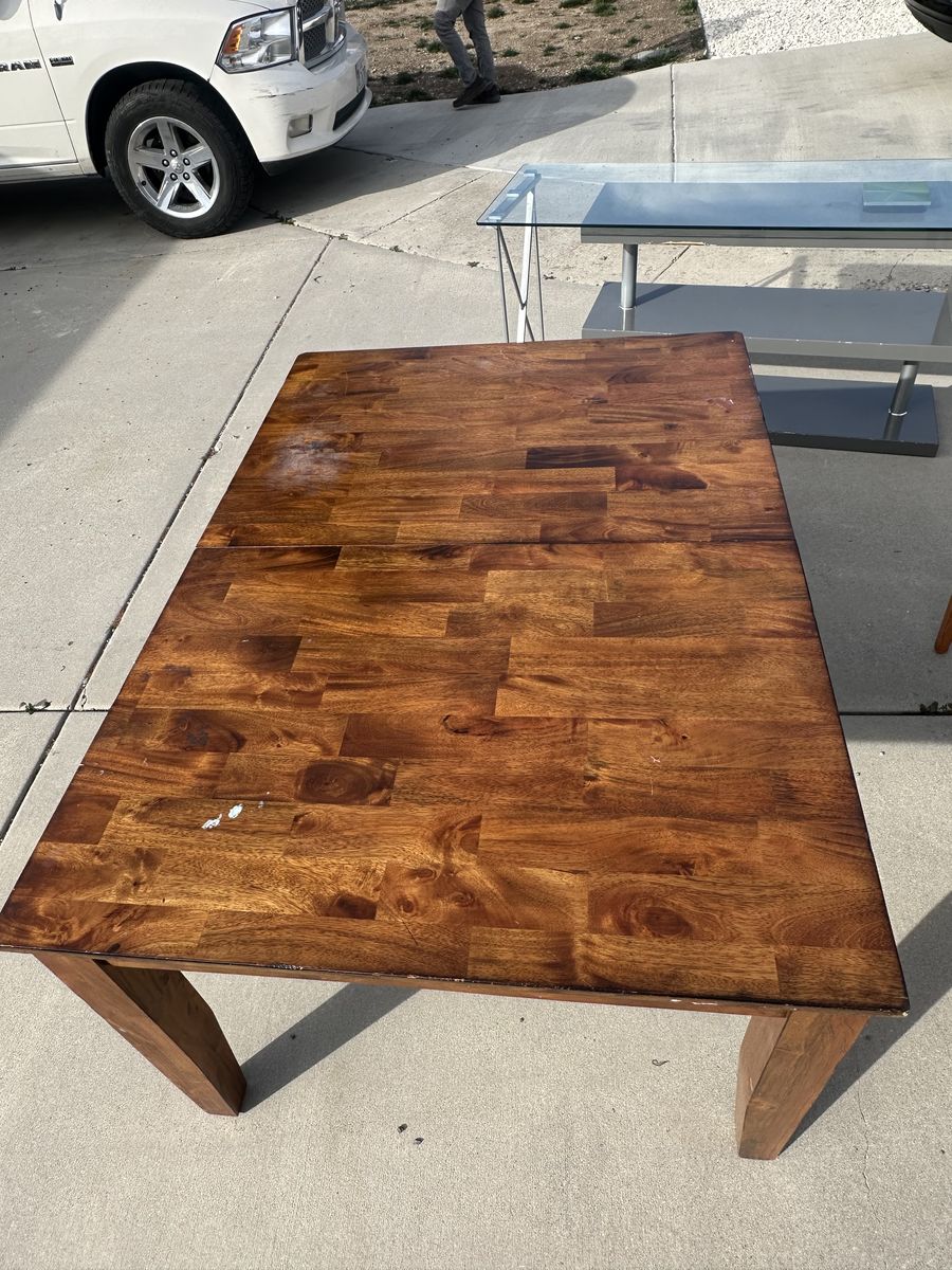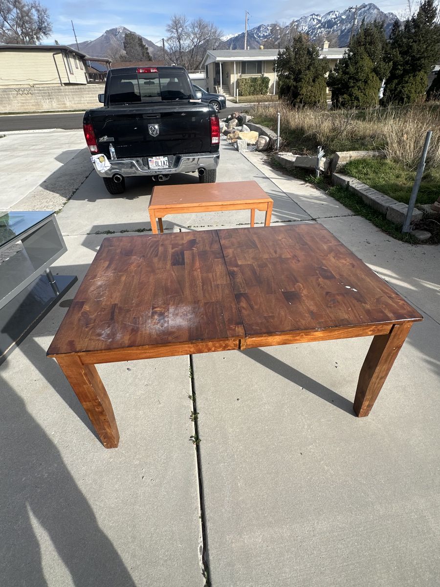 large table, is a 3 part table missing the middle with damage to surface. 30$