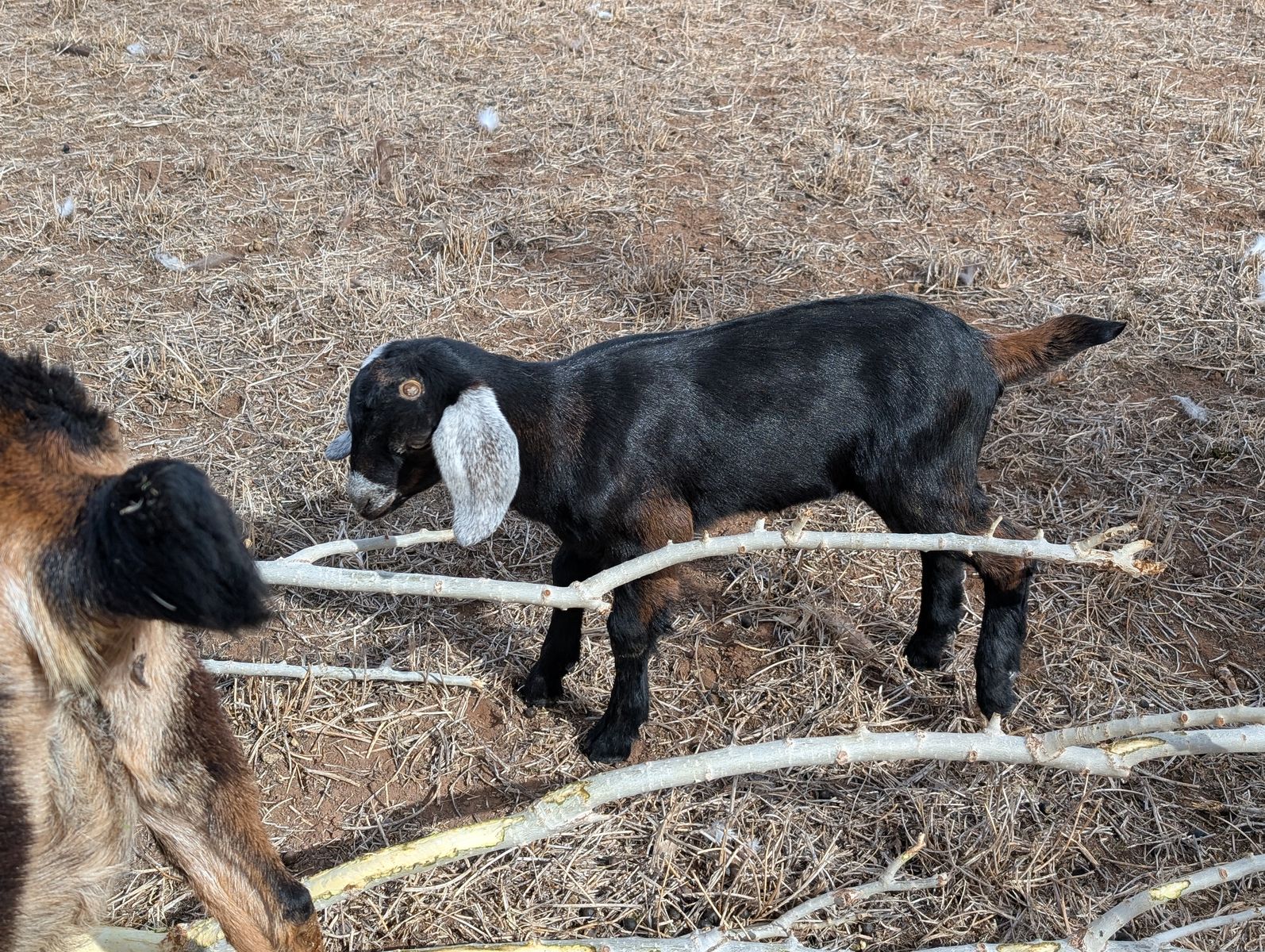 Nanny is a pet goat almost 3 years old with button nosed doe kid.