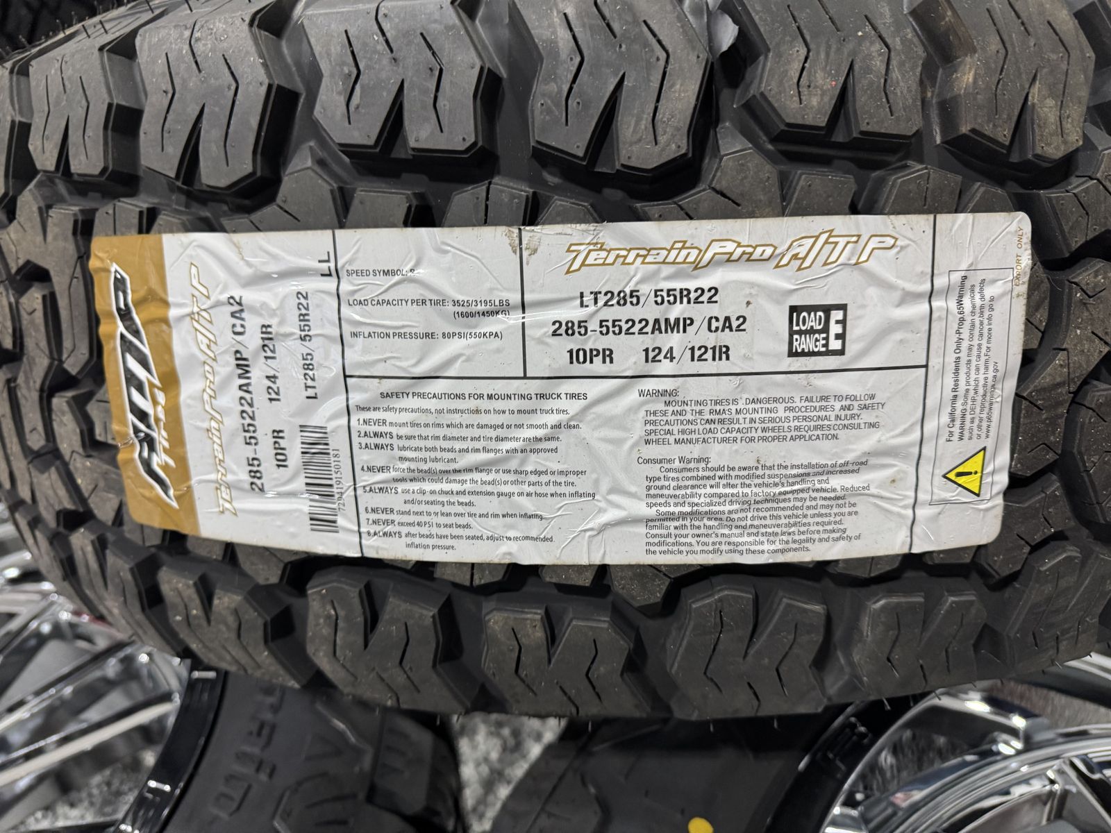 New Amp AT Pro 285/55R22 (34.4” tall 11.7” wide)