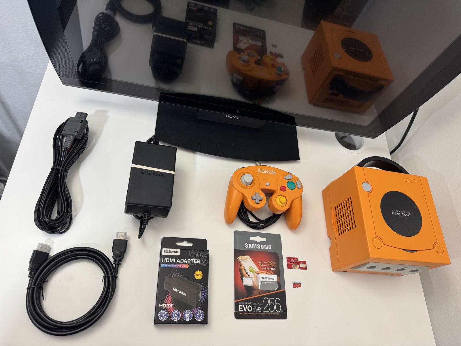 Zelle1 GameCube Spice Orange Dol-001 Mod Picoboot (New Clock Battery) 1 Controller 1 Micro Sd Card 256Gb Samsung Loaded 1 Sd2SP2 Card 1 Power Cable 1 Hdmi Converter 1 Hdmi Cable 1 Av Cable