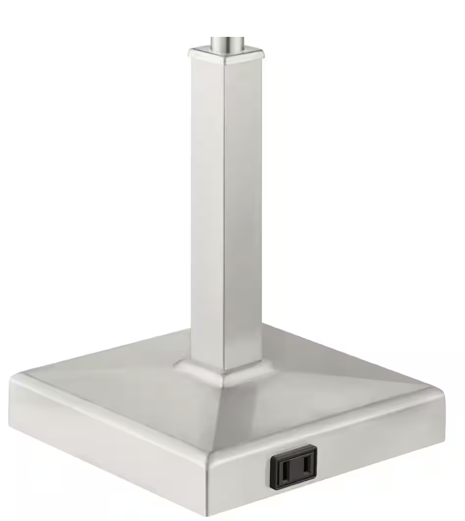 Hampton Bay Stanton 20 in. Brushed Nickel Table Lamp with White Fabric Shade and Polarized Outlet