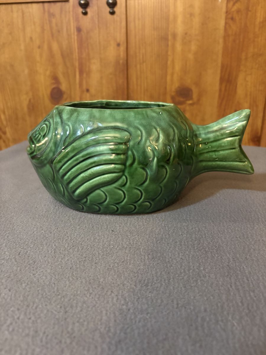 VenmoCeramic Green Smiling Fish Planter 10x4x6in