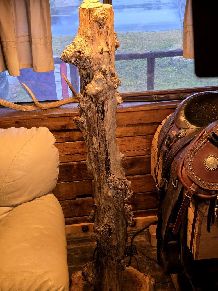 VenmoVery unique floor lamp up for grabs! The wood has so much personality, and is an absolute work of art. If you have a lodge/cabin, or just a country themed home, this is a statement piece for sure that is a must-have. The measurements are included in the photos, but please message me with any further questions. Willing to transport!