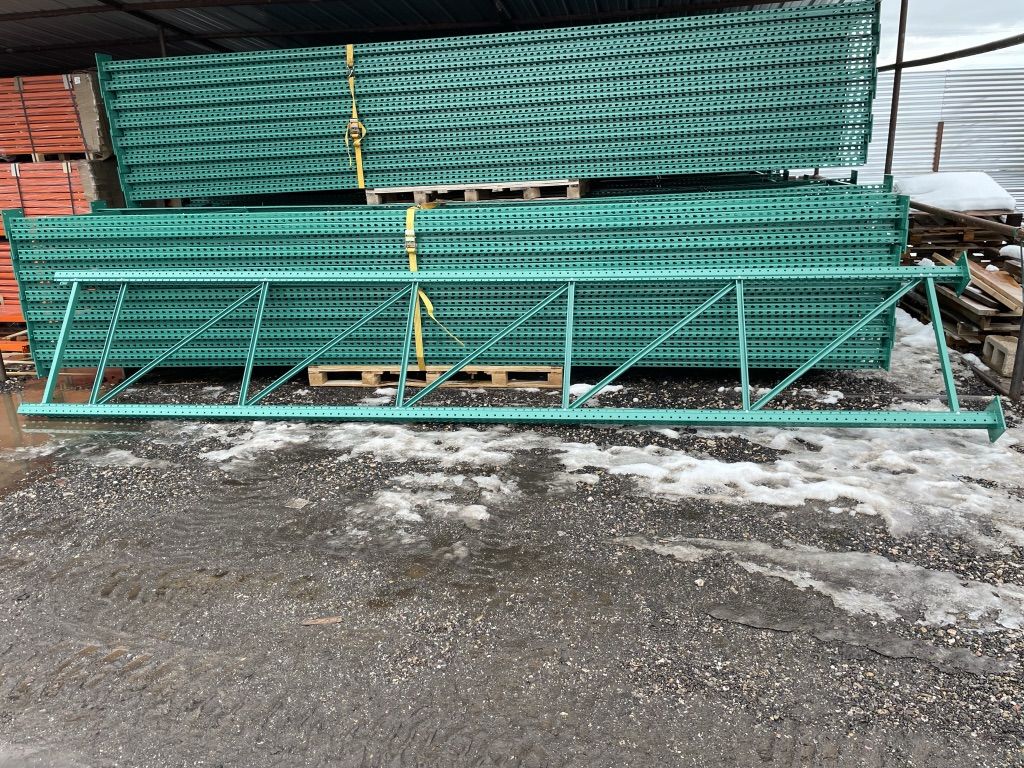 We carry new teardrop-style pallet racking for warehouses, commercial buildings, shops, and distribution centers. All components are in stock and ready for pickup or fast delivery.