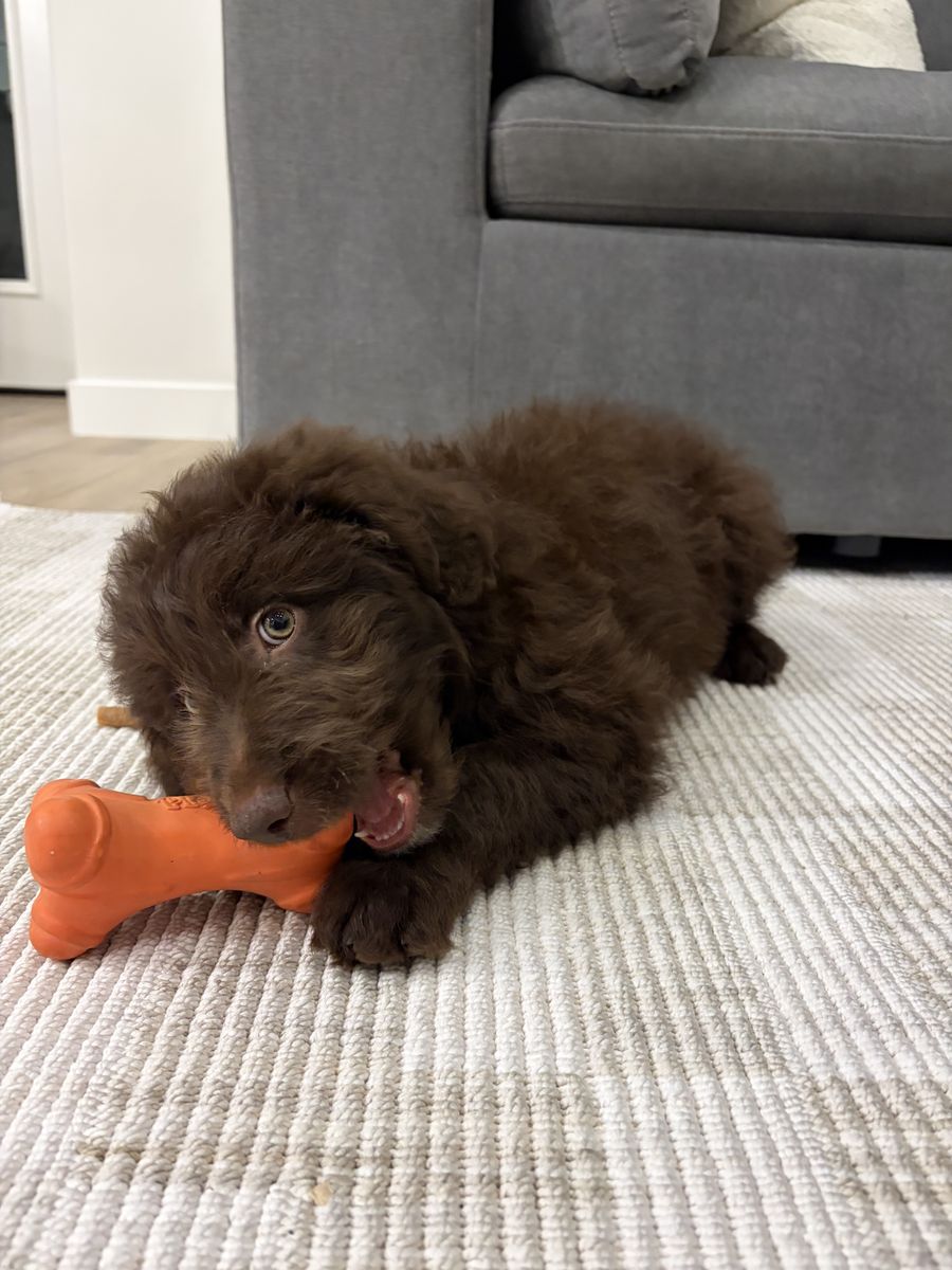 Does not shed and is so insanely smart for his age. Very playful and sweet.