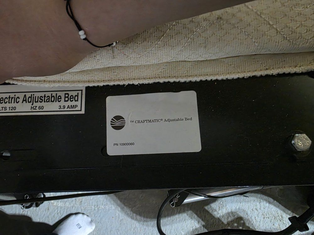 This is a craftmatic electric adjustable bed. It's an older model but works well! People use Craftmatic electric adjustable beds to alleviate chronic pain, improve sleep quality, and for lifestyle comfort like reading or watching TV in bed. They are commonly used by individuals with conditions such as acid reflux (GERD), snoring, back/neck pain, arthritis, poor circulation, or to assist with recovery after surgery. This bed doesn't come with the mattress - what you see is what you get. But its in good shape and works well. Twin size. Brand New these range from $1,800 to over $7,000. Asking $150.