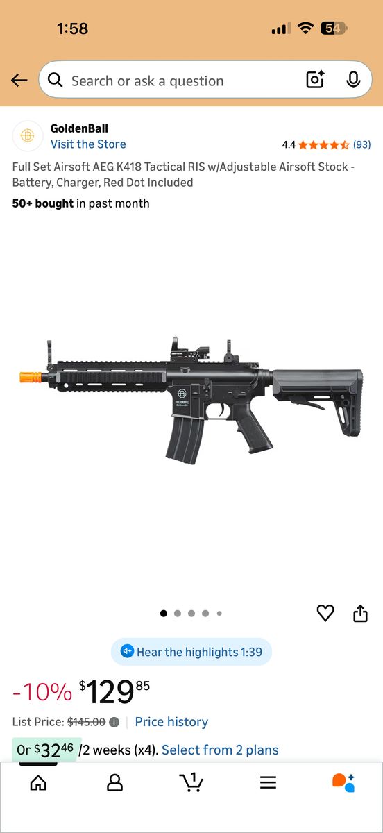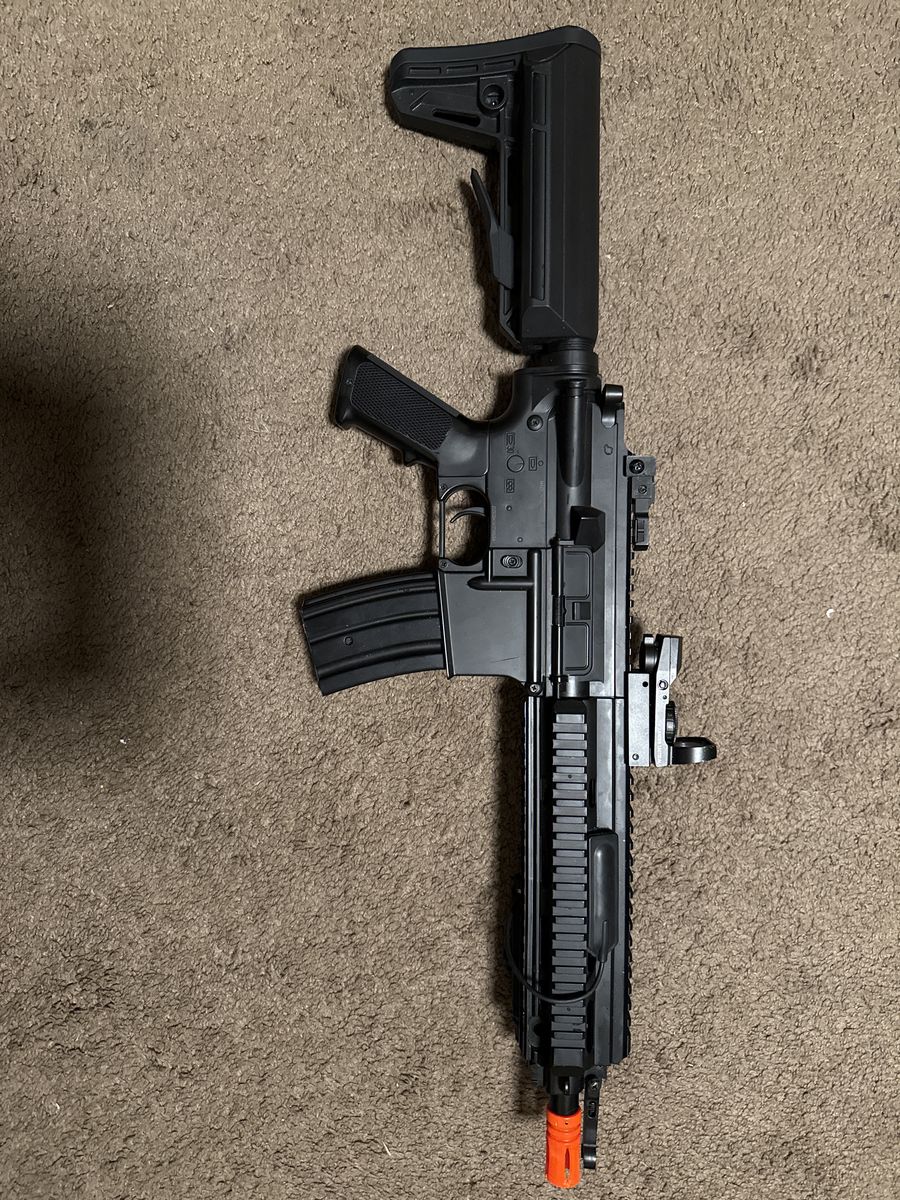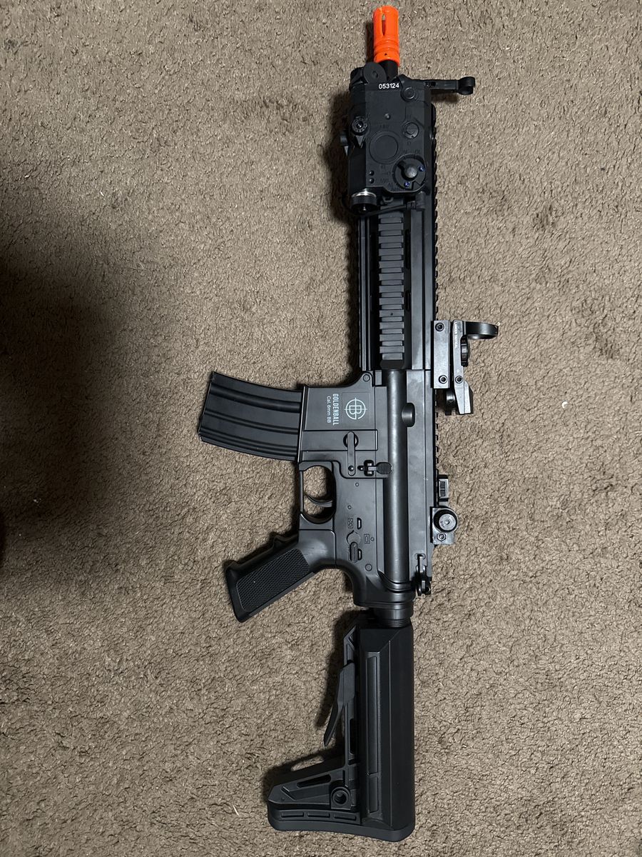 PayPalThe tac laser comes with batteries but the sight does not the stock is adjustable any questions feel free to message me paid 145$ dollars for it tac laser came separate paid 60 for that and of course you can look it up on Amazon