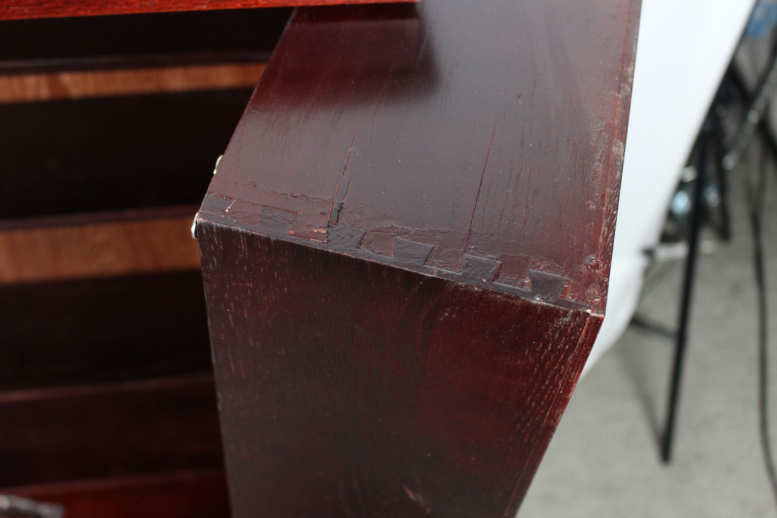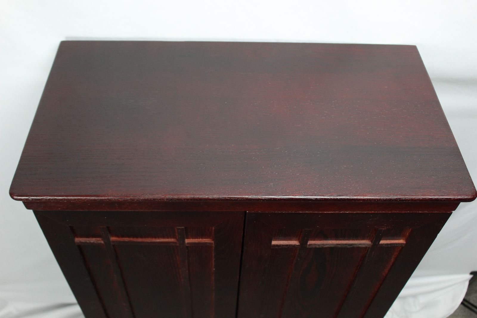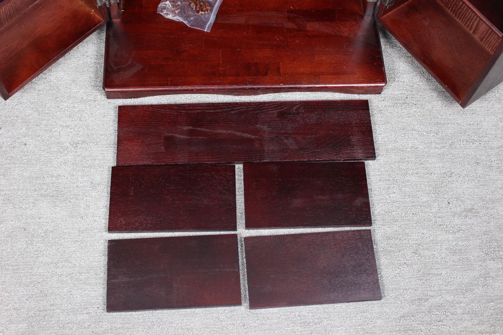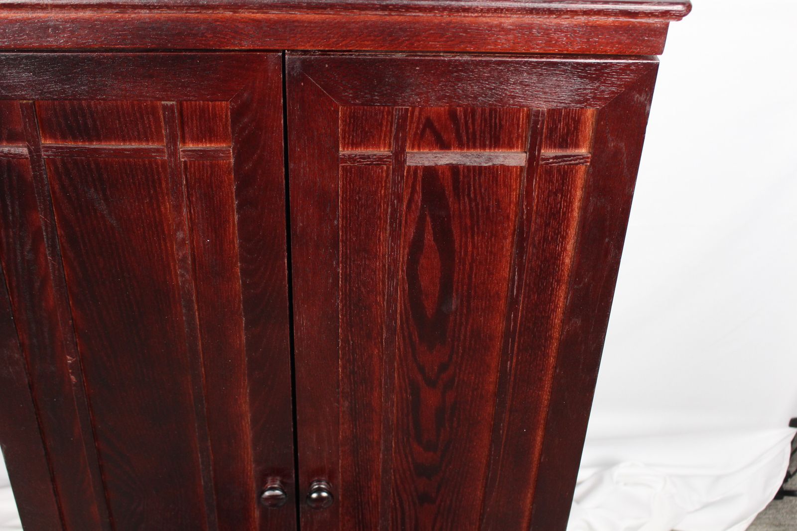 New condition with some blemishes-See pictures We have 3 of these available 2 are still in sealed box Deluxe Cherry Finish Comes Fully Assembled Fully adjustable shelves allow for total versatility in storing DVD's, Videotapes and Game Cartridges Holds 612 CDs or 298 DVDs