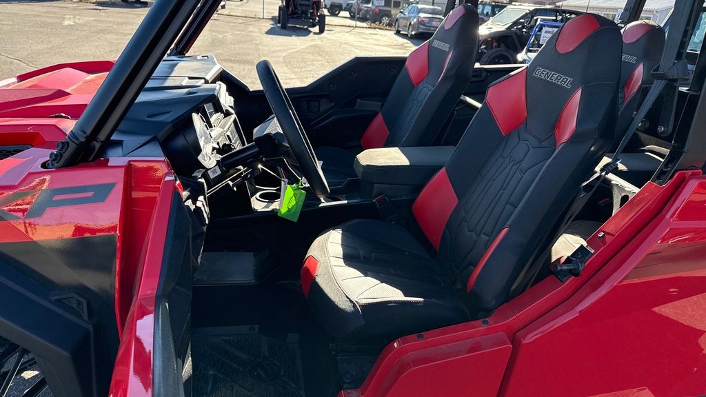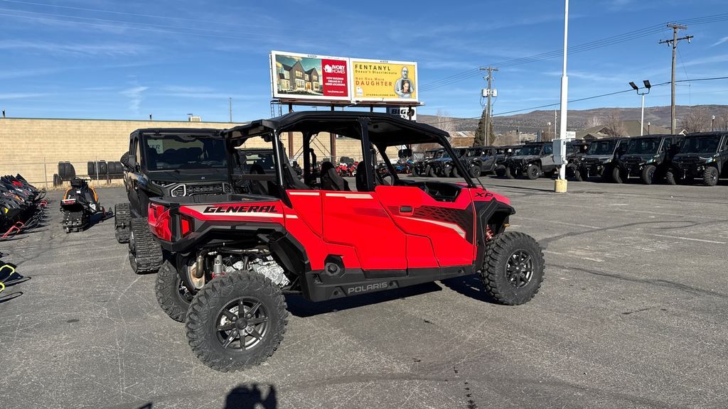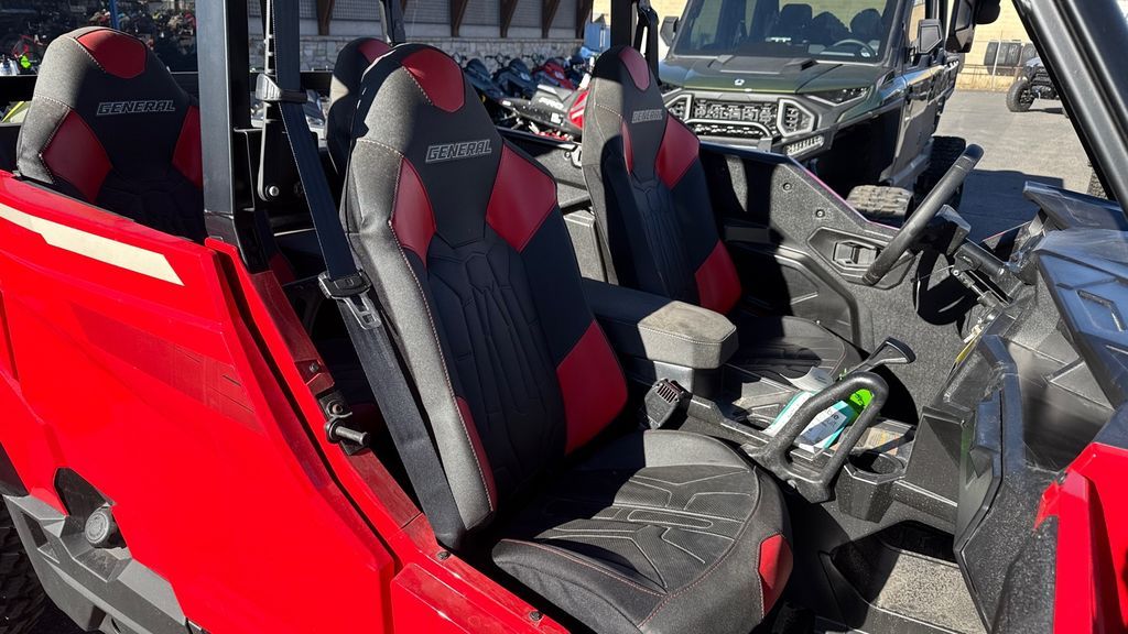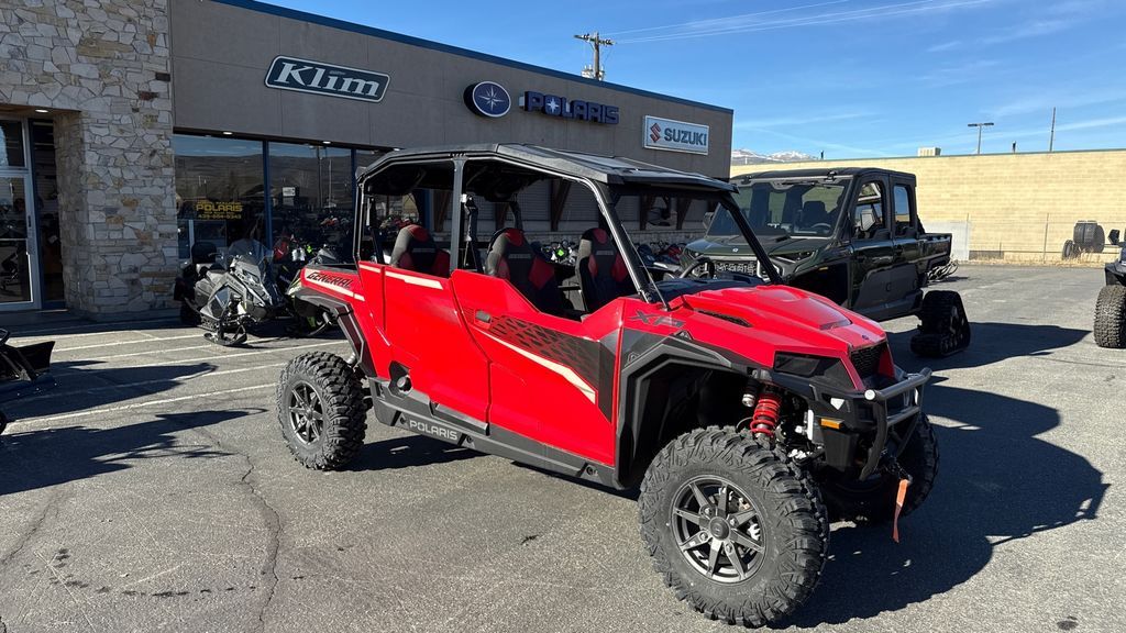 2025 Polaris® General XP 4 1000 Ultimate DO IT ALL—WITH ENHANCED PERFORMANCE Whether you're tackling trails or tasks, GENERAL XP 1000 keeps up with your ambitions. Features may include: UNRIVALED VERSATILITY No matter what the trail throws in your way, you'll have everything you need to find a path through, out and home with the versatility you need for any adventure. After all, as any outdoors person knows, the right equipment always matters. LONG-HAUL COMFORT Surround yourself with premium interior features and the convenience of advanced technology to make all-day rides a reality. PERFORMANCE WHERE IT MATTERS When you’re running trails in GENERAL XP 1000, its performance-inspired chassis, 100 HP engine, and fast-engaging all-wheel drive deliver it all. 600 lb. Dumping Cargo Box 14" Suspension Travel High Clearance A-arms Polaris HD Plus 4500 lb. Winch Poly Sport Roof Low-Profile Sport Bumper 30" Pro Armor Crawler XG Tires True On-Demand AWD with Versatrac Turf Mode Premium Half Doors 7" Display Powered by RIDE COMMAND with Integrated Cameras Rockford Fosgate® Stage 3 Audio Convex Rear-View Mirror Padded Center Console