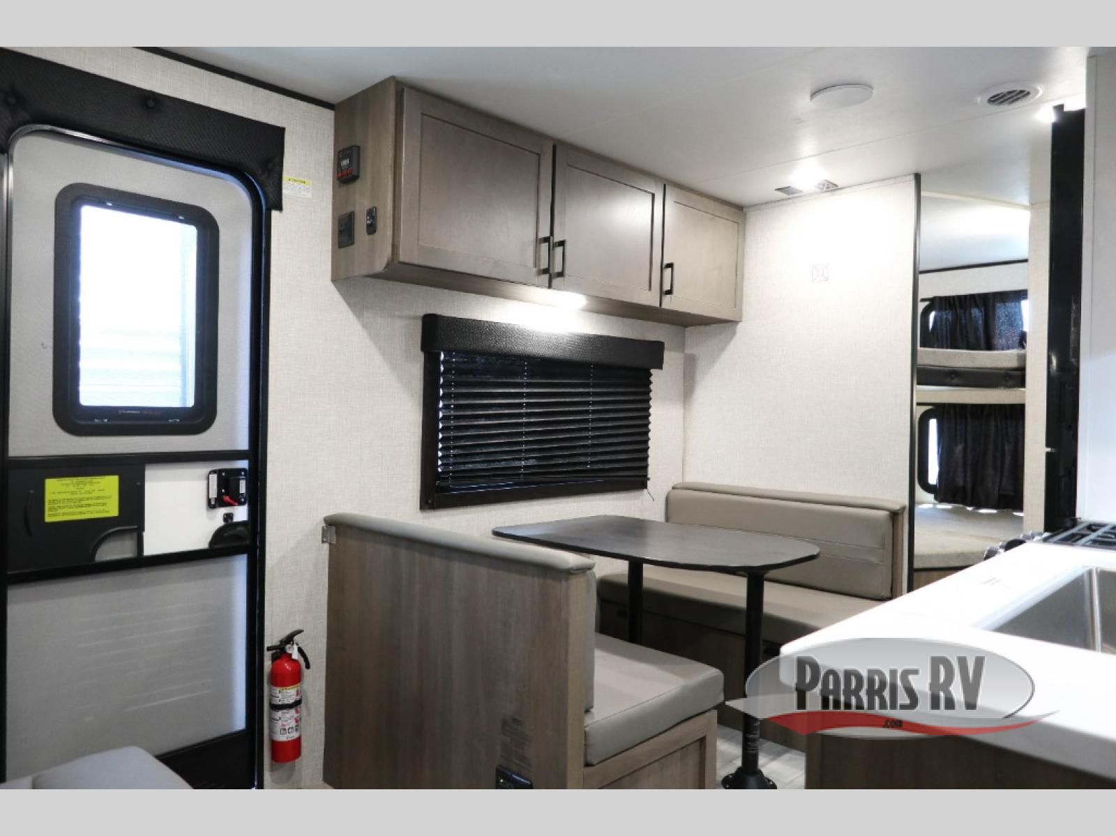 This dual-axle travel trailer can sleep eight people each night, so invite your family or friends along. You will enjoy the front private bedroom up front with dual wardrobes to keep your clothes tidy, and an easy lift bed with storage. While the chef of your group is preparing lunch on the three burner cooktop, everyone else can visit on the jack-knife sofa or play a game at the booth dinette. You will also find a large 18' power awning with LED lights outdoors which is where you may usually find everyone. The private tub/shower and toilet is right next to the double-size bunks for convenience, and the sink is just outside of this room so two people can freshen up at once.