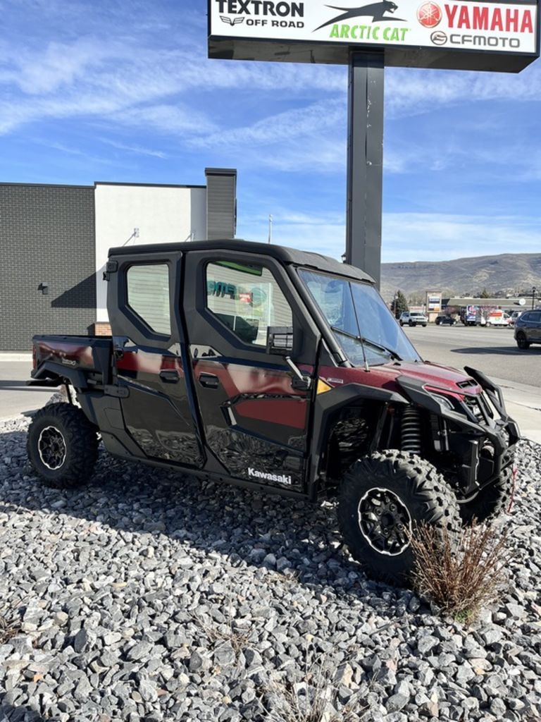 2026 Kawasaki Ridge® Platinum Ranch Edition HVAC PERFORMANCE UTILITYFOR TOUGH JOBS Kawasaki RIDGE® side x sides raise the standard for those who demand versatile, all-season confidence, and superior build quality. Power comes from a groundbreaking 999cc Kawasaki-built in-line 4-cylinder engine, delivering performance you can count on—on the job and beyond. Features may include: KAWASAKI QUALITY STRONG. DURABLE. RELIABLE. Assembled in the USA with foreign and domestic parts and backed by a 3-year limited factory warranty, RIDGE® side x sides are built strong, reliable, and durable. Developed for peak premium performance, dependable craftsmanship shines in every detail. FULL CAB WITH HVAC MAKE YOUR OWN CLIMATE Models with a factory-equipped full cab come complete with heating, ventilation, and air conditioning (HVAC), creating a comfortable escape from the heat in summer, the cold in winter, and everything in between. READY TO WORK OUTWORK. OUTPERFORM. Built to conquer the day, RIDGE® side x sides blend hard-working utility with refined performance. Heavy-duty towing and hauling capacity, an off-road-tuned chassis and suspension, and a tough exterior deliver serious capability—supported by a cabin full of useful comforts. GROUNDBREAKING 116-HP¹ SMOOTH & POWERFUL RIDGE® is the first Kawasaki side x side with a 4-cylinder engine, delivering a refined, automotive-inspired riding feel with strong, smooth power across the range. The 999cc in-line 4-cylinder engine—paired with a smooth CVT and efficient intake and exhaust—responds with confidence whether you’re working hard or riding for fun. Selectable Power Modes and 4WD with front and rear differential lock* add another layer of control in low-traction conditions. PREMIUM AUTOMOTIVE FIT & FINISH A BETTER RIDE RIDGE® side x sides ensure class-leading comfort with premium fit and finish. Thoughtful, automotive-inspired touches, from tasteful interior lighting to high-grade materials and spacious accommodations, keep every ride fresh. A high-tech cabin includes a full-color display, built-in smartphone connectivity, and Kawasaki’s exclusive RIDEOLOGY THE APP POWERSPORTS† to keep you connected and informed. ADDITIONAL: WARN® VRX 45-S Powersport Winch 8-in Garmin Tread® off-road navigation system and group ride radio Built-in front/rearview cameras Audio system with 4 speakers