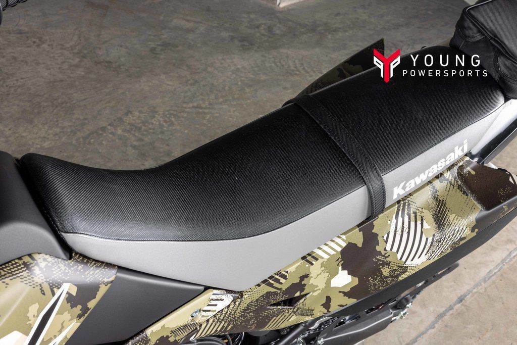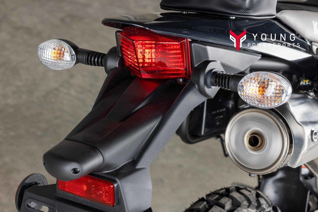 The KLX®300 dual-sport’s rider-friendly ergonomics closely align with the KLX®300R off-road motorcycle, offering an upright and relaxed riding position. Footpegs are positioned closer to the bike’s centerline for optimal riding comfort during on- and off-road excursions. Complementing adventure capabilities is a thick-padded seat that provides comfort on longer rides, while the 35.2-in seat height allows riders to comfortably reach the ground at stops for added confidence. The shroud design allows smooth transitions when shifting, enabling riders to feel more at one with their machine when cornering.
