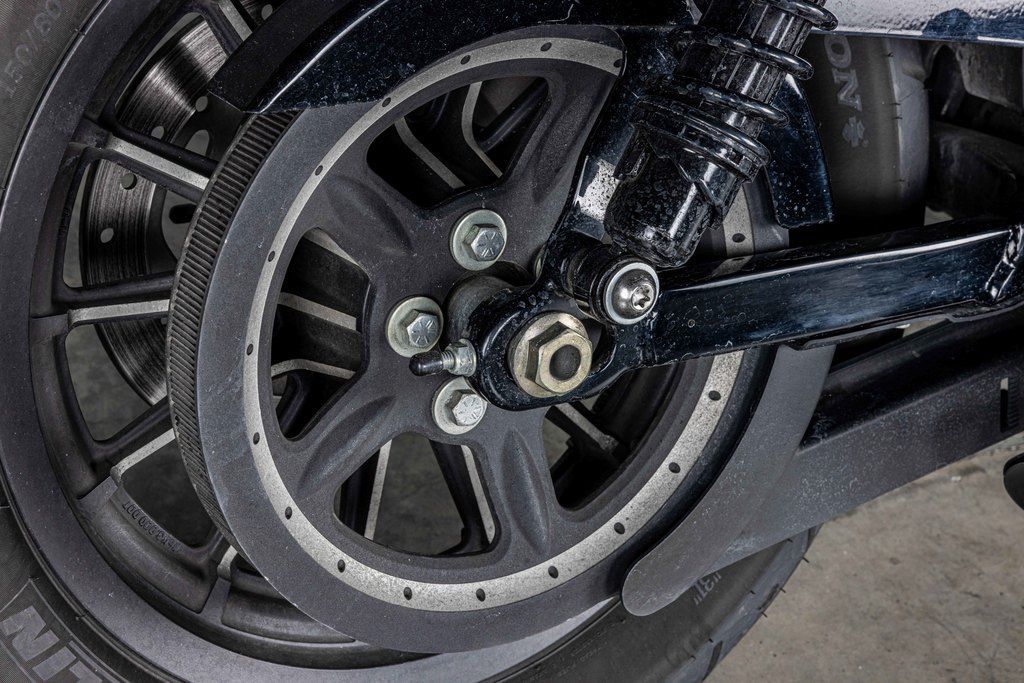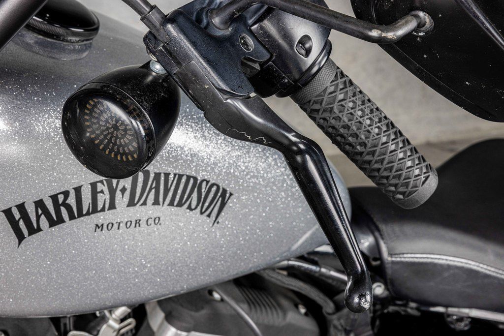 True to the clean, fast lines of the bike, the side-mounted license plate leaves the rear fender surface smooth and uncluttered. Minimal and unique—every inch of the Iron 883™ motorcycle is styled to perfection to achieve a raw, custom look.