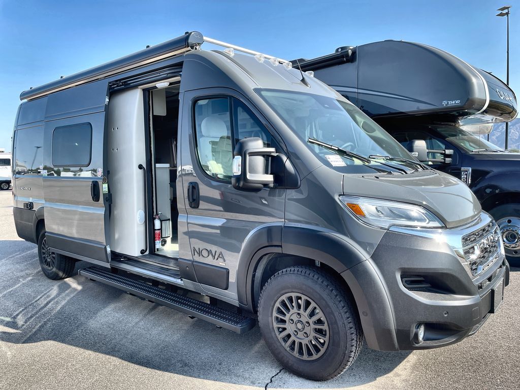Each Nova Class B gas motorhome by Coachmen features Sumo Spring front and rear suspension for a smooth ride. Each unit is built on a Ram ProMaster 3500 chassis, and is powered by a 3.6L V6, 24 valve engine with 280 HP. You will appreciate the innovative Firefly multiplex system, the Sure Level tank sensors, and the 3 Group 31, 115AH AGM batteries for added power, as well as a new 24" LED Smart TV to help keep you entertained on long trips. Inside, you'll find solid hardwood cabinetry, a fiberglass shower verses the competitors ABS shower, a remote control MaxxAir fan with a rain sensor, and many more comforts to make you feel right at home. There is also a Truma Aventa 13,500 BTU A/C with three speeds, a dehumidifier, and night mode to ensure your comfort throughout each trip! An optional Li Lithium Battery System can be added which features a 640 amp-hour lithium battery, a Bluetooth battery management system, a Xantrex XC Pro 3,000W inverter/charger, and more features for off-grid capability!
