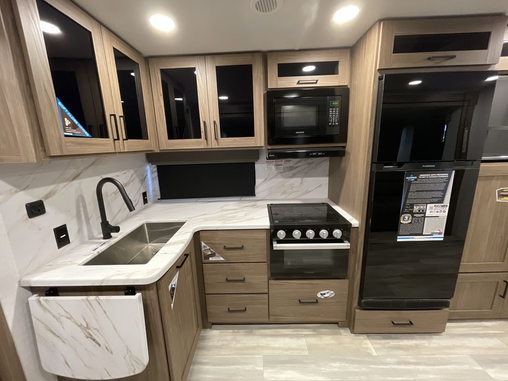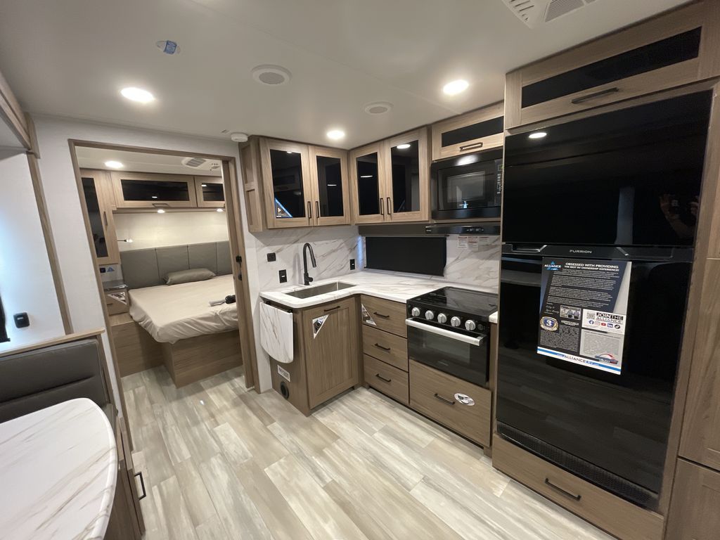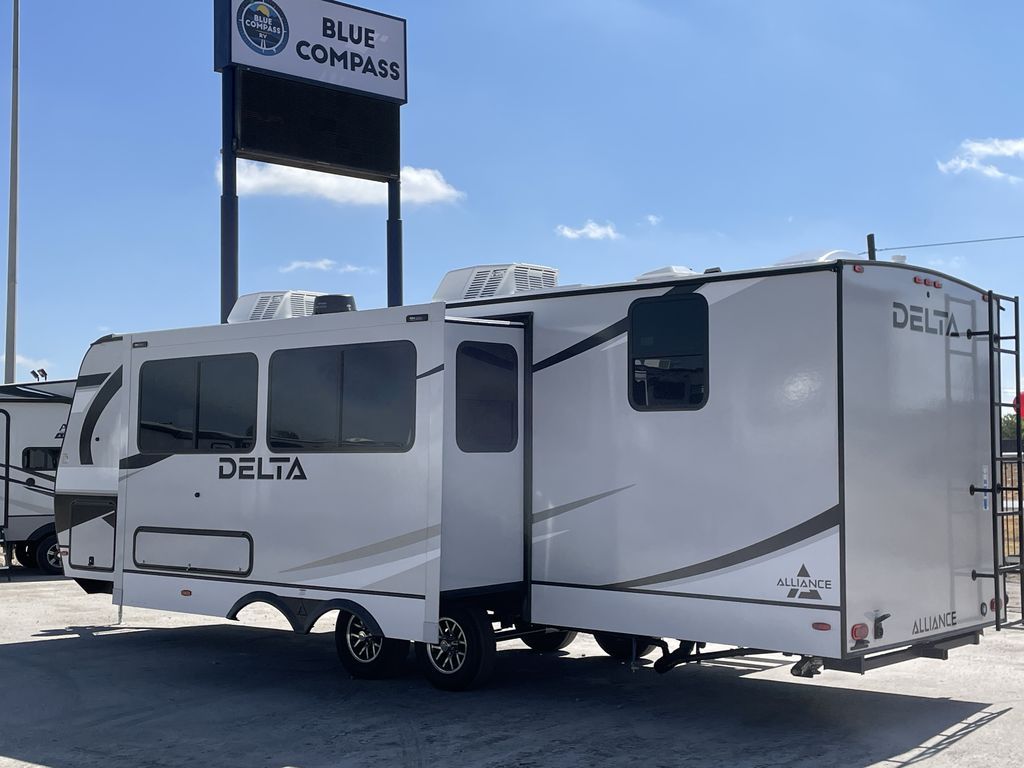 Form and function work together with every one of these Alliance RV Delta travel trailers! They are built with a walk-on roof with a seamless PVC roof covering, Mylar reinforced exterior seals, and a heated and enclosed underbelly to protect your unit. The commercial grade vinyl flooring will be easy to clean, and the oversized atrium windows throughout let in plenty of natural sunlight. With 62 cu. ft. of drop frame pass-through storage, you can bring along all of your essential camping gear. There are many at home interior conveniences including a Bluetooth speaker, USB charging throughout, and even Roller shades throughout. Come find your favorite model today!