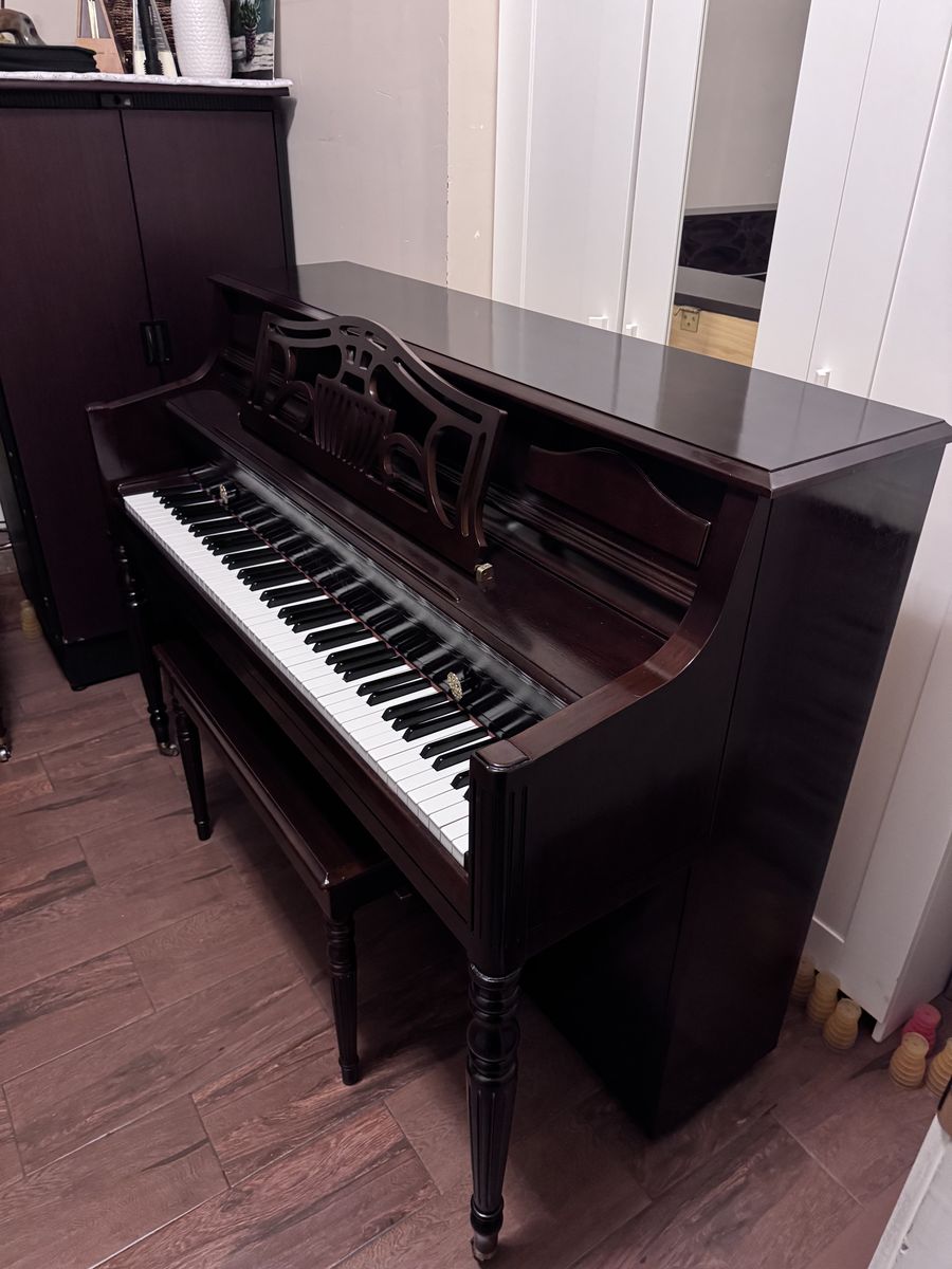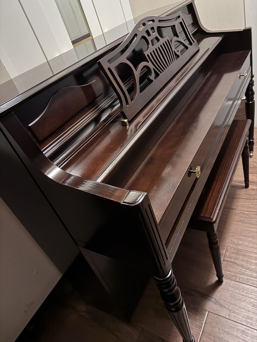 VenmoDark Cherry Color. Piano in great condition, all the keys and pedals are working great, deep cleaned and tuned. We do free delivery and free home tuning services. 56.5 inches L, 24.5 inches W, 43.5 inches H