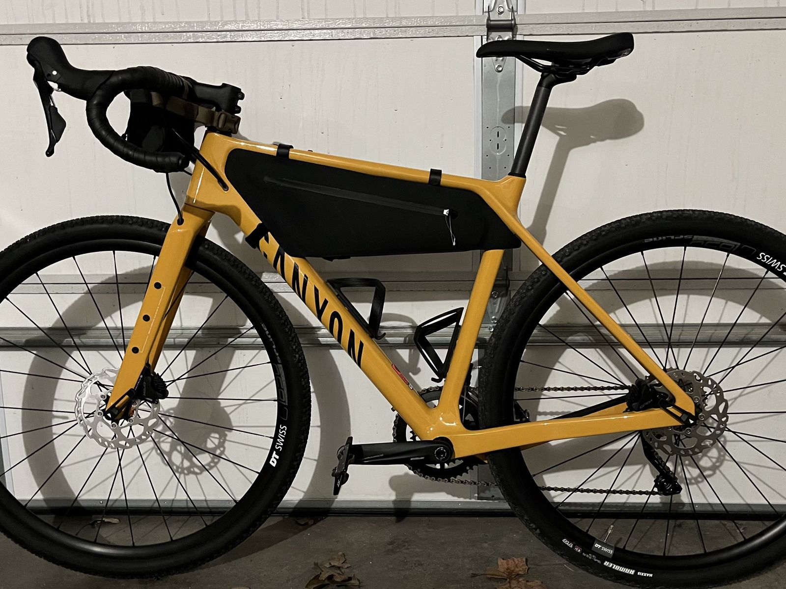Canyon frame bag included. Pedals, bottle cages and handlebar bag not included.