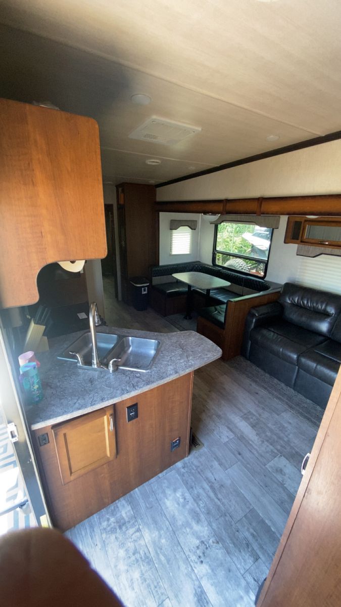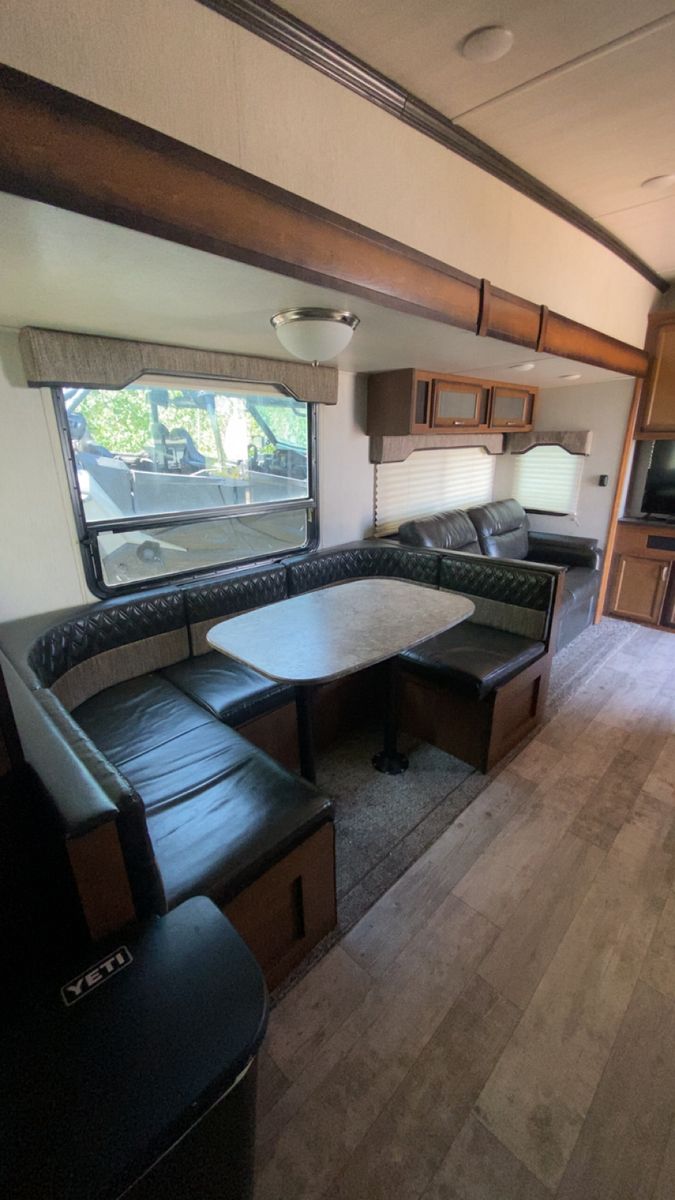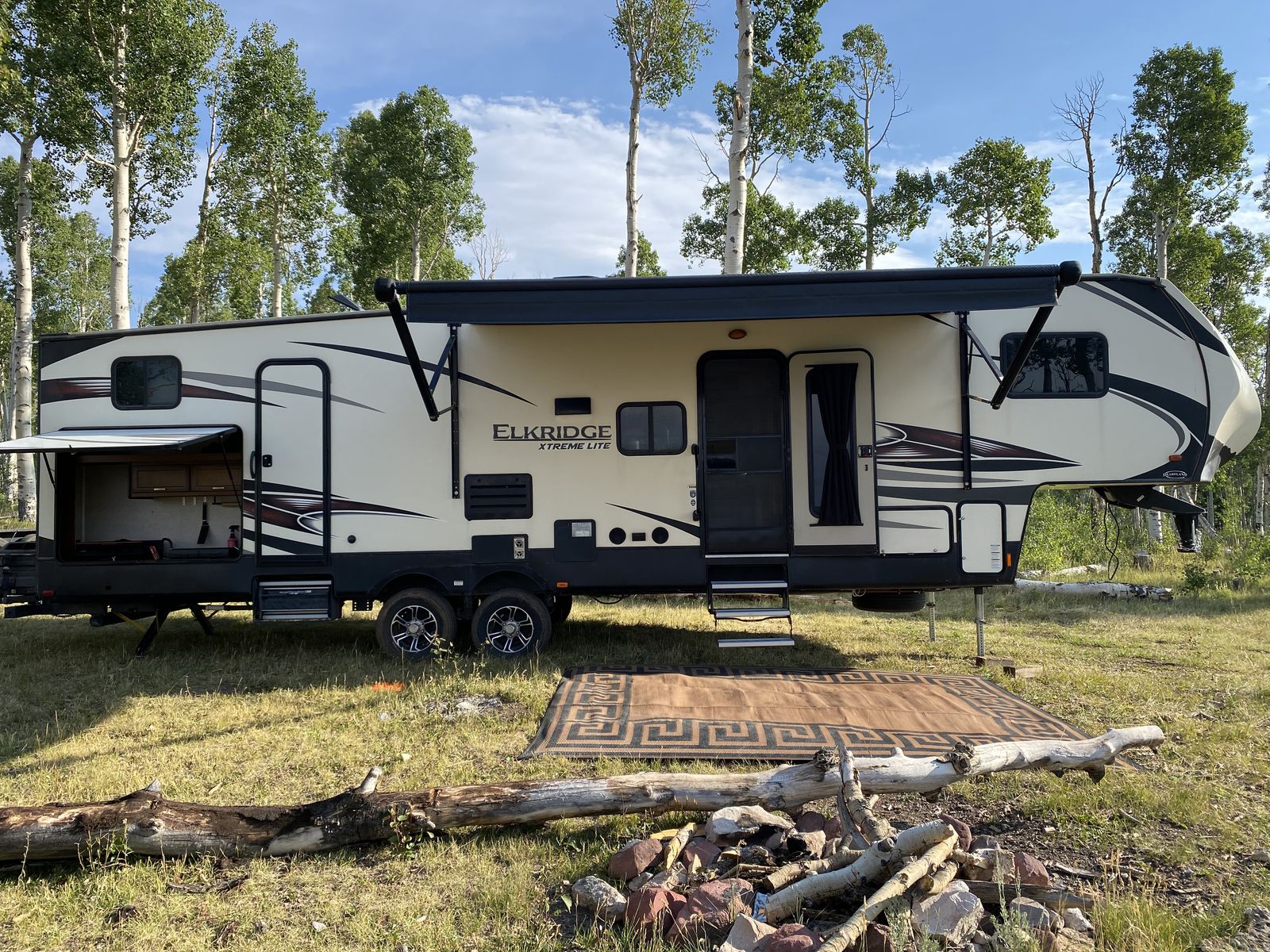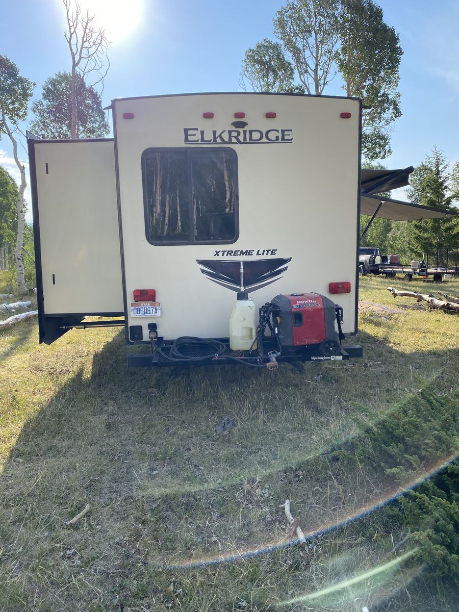 2018 heartland elk ridge light. Comes with transferable warranty. Sleeps 9 comfortably. Has two slides one in kitchen and one in back room. Has 1 1/2 baths. Queen bed up top. Couch and dining table go into beds also New batteries put in in April. Has 5th wheel adapter. Electric jacks front and rear Power awning in great shape 3 tvs Gas/ Electric fridge Gas/ Electric hot water heater Gas 3 burner stove Outside kitchen has sink and mini fridge(I took it out for my blackstone but will come with trailer) Will deliver if needed.