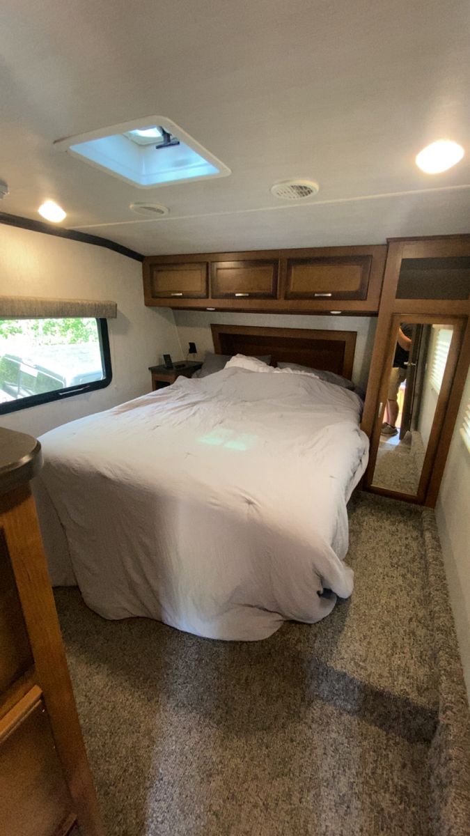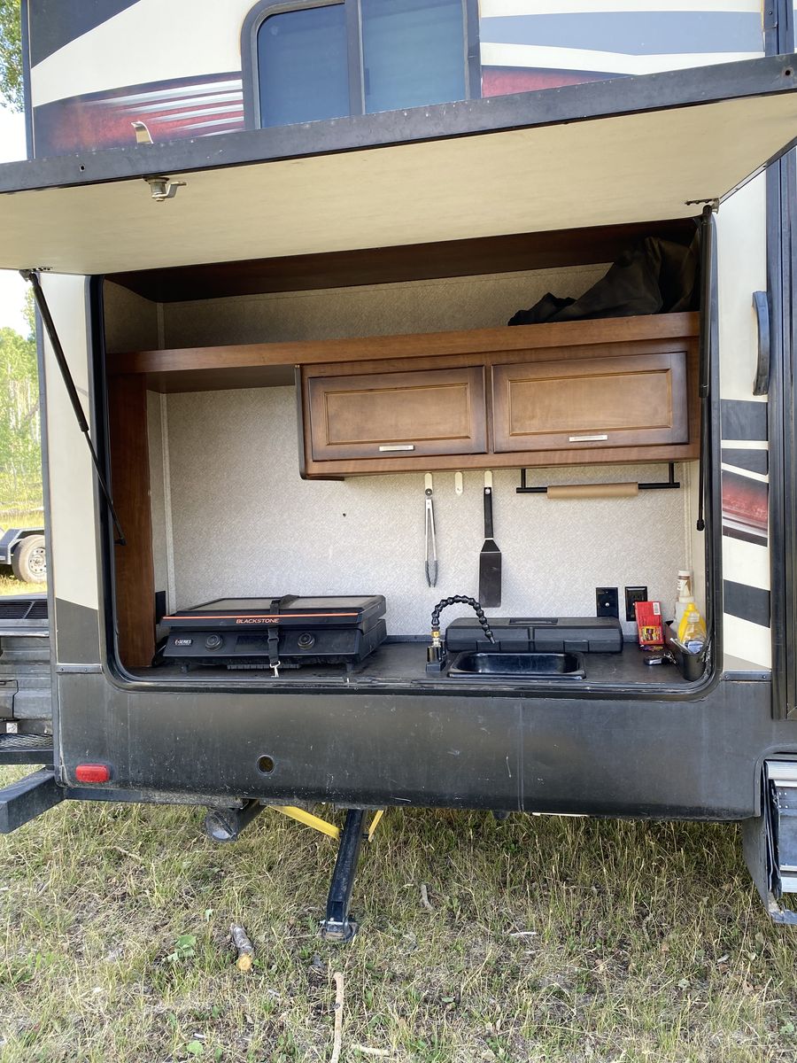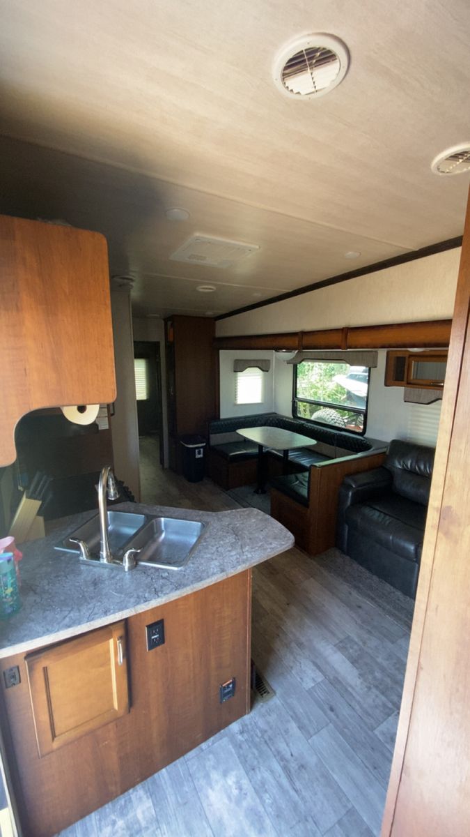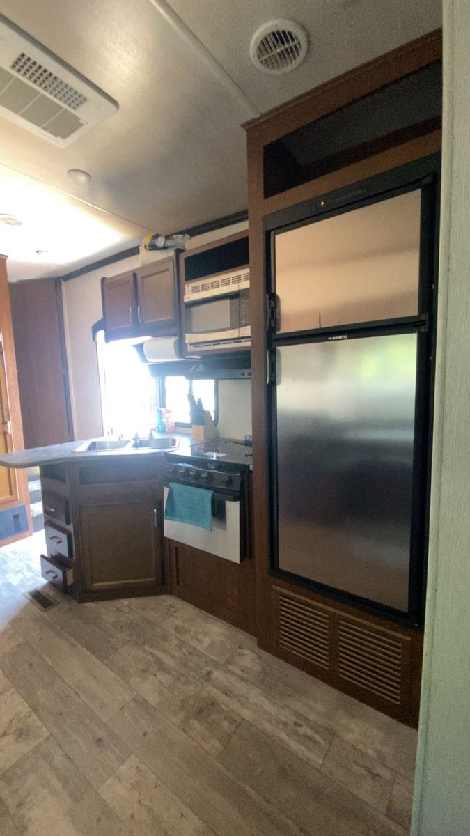 2018 heartland elk ridge light. Comes with transferable warranty. Sleeps 9 comfortably. Has two slides one in kitchen and one in back room. Has 1 1/2 baths. Queen bed up top. Couch and dining table go into beds also New batteries put in in April. Has 5th wheel adapter. Electric jacks front and rear Power awning in great shape 3 tvs Gas/ Electric fridge Gas/ Electric hot water heater Gas 3 burner stove Outside kitchen has sink and mini fridge(I took it out for my blackstone but will come with trailer) Will deliver if needed.