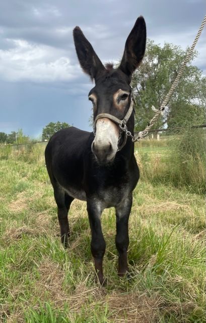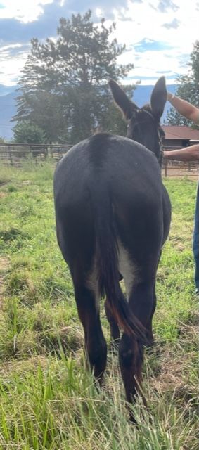 Jackson stands 14.1 hands. He is black with white points, great feet, trim belly line, fantastic people loving personality, and an easy breeder. Jackson is a proven producer of quality mules. His first colt crop are now two years old and entering training. They are proving to be gentle, easy to catch and smart just like their sire.