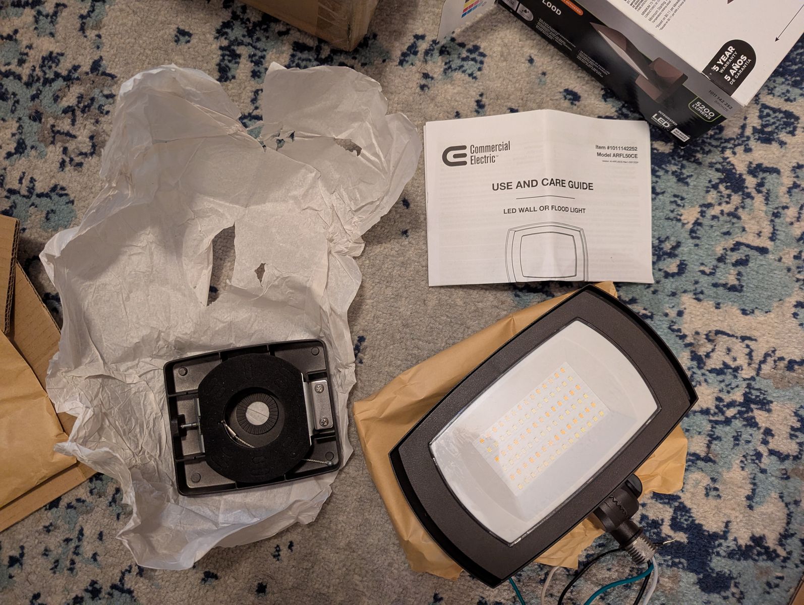 NEW in box Commercial Electric ARFL 250-Watt Equivalent, 5000-Lumens, Selectable CCT, Integrated LED, Arch Wall Flood Light, Bronze