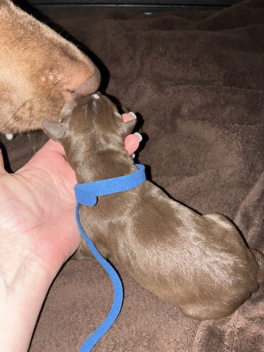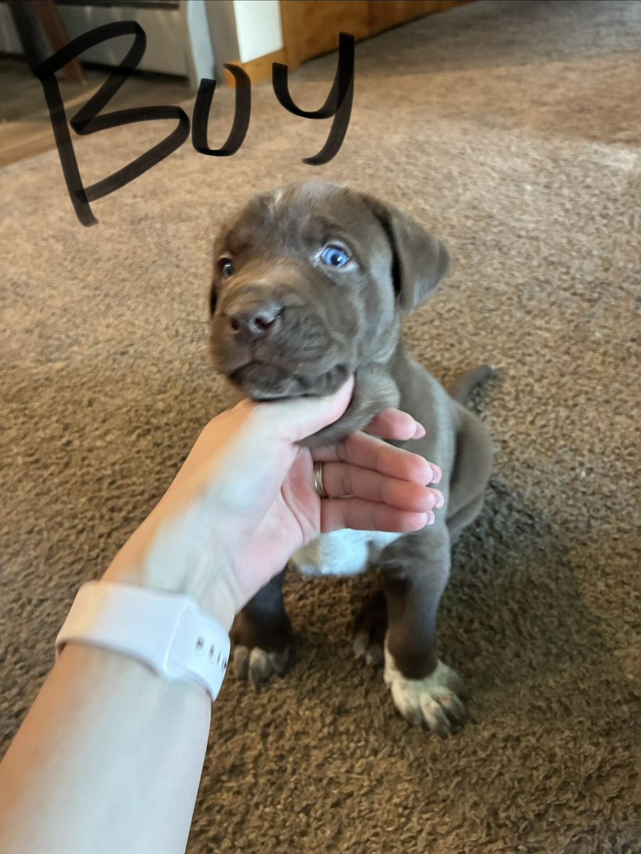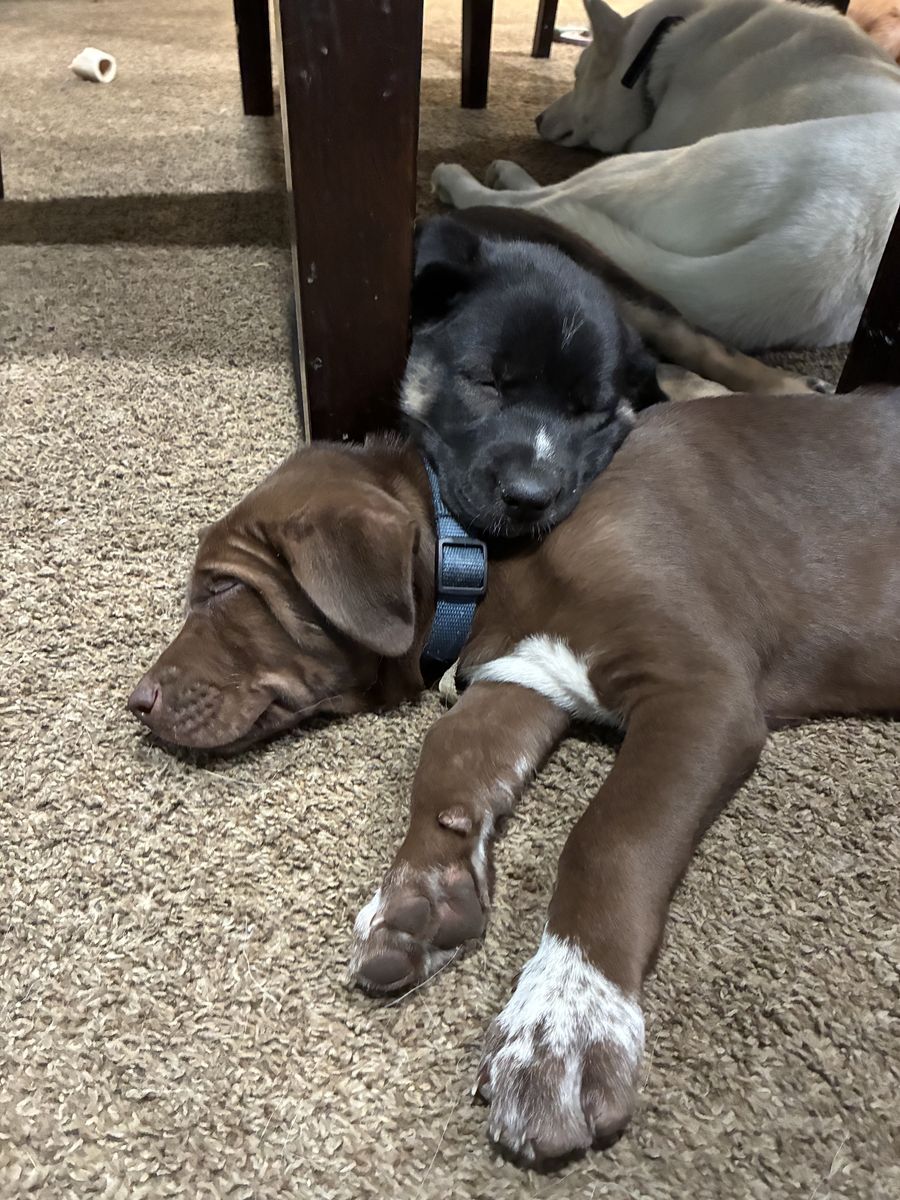 VenmoWeimaraner SiberianHusky mix puppies for sale. They were born february 4, 2026. They got their first shots on march 25th, and are ready for their fur-ever home! We have 1 girl and 1 boy. The boy is all brown with white on his chest and white toes and blue eyes. The girl is black with tan legs and one blue eye and one brown eye. The father is the husky, he is full white with glacier blue eyes. The mother is the Weimaraner, and she is brown with brown eyes.