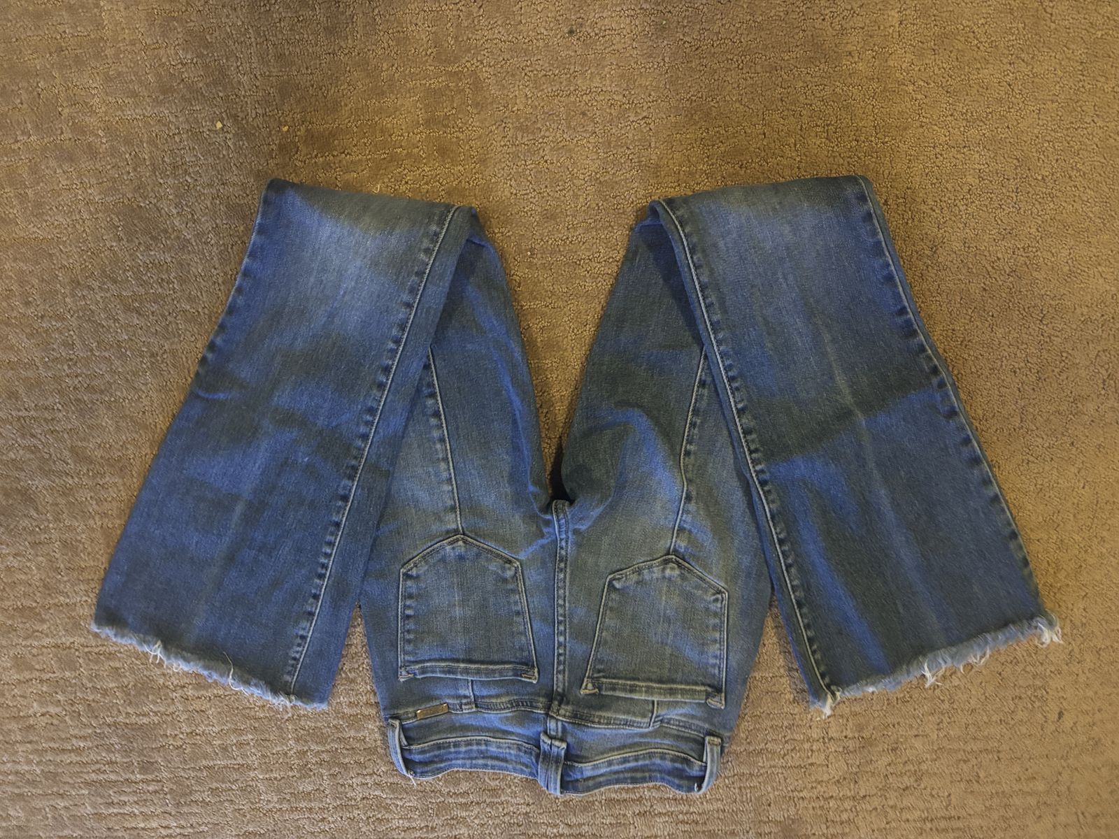 ApplePayBlue denim flare jeans with frayed hem #flared #denim Size 25