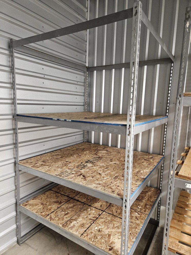 VenmoThese are industrial rack shelving. Plywood bottom for the large rack. Single Cedar pallet bottom on the smaller one.\